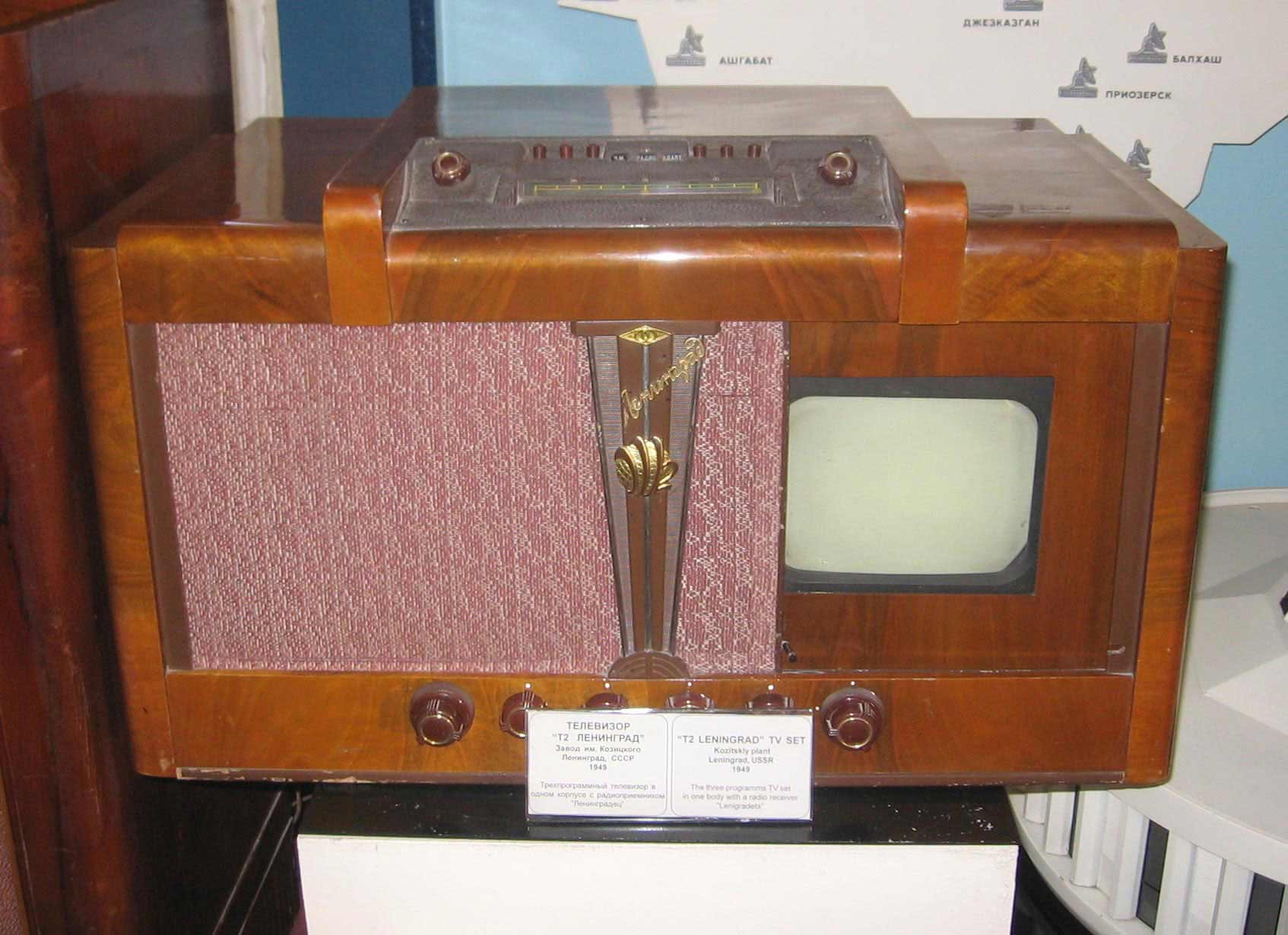 Телевизионный приёмник *Ленинград Т-2* с 1949 года выпускал Ленинградский завод им. Козицкого и завод Саксенверк г. Радеберг (ГДР). Телевизор **Ленинград Т-2** это модификация модели **Ленинград Т-1**. Телевизор создан на заводе имени Козицкого, некоторое время там выпускался, затем передан на завод Саксенверк для увеличения количества выпускаемых телевизоров и экспорта. Телевизор предназначен для приема трех телевизионных программ, приема радиостанций, в диапазонах ДВ, СВ, КВ и УКВ-ЧМ (используется высокочастотная часть приемника *Ленинградец*, смонтированного в телевизоре), а также для прослушивания грамзаписи от внешнего проигрывателя. В телевизоре **Ленинград Т-2** применён кинескоп 23ЛК1Б или ЛК-230 в первых выпусках. Размер изображения 180х135 мм. Чувствительность по каналу изображения 500 мкВ. Потребляемая мощность 320 Вт, при приёме радиостанций 120 Вт. Выходная мощность звука 2,5 Вт. Диапазон частот 100...5000 Гц. Чёткость 400 линий. Установка оформлена в деревянном, отделанным шпоном под ценные породы дерева футляре с размерами 780х400х460 мм. Масса модели 52 кг. Питание от сети переменного тока напряжением 110, 127 или 220 в. Экран защищён небьющимся стеклом и подвижной шторкой. На верхней панели расположено управление радиоприёмником. На задней стенке расположены регуляторы частоты строк и кадров, размера строк, кадров, центровки строк и кадров. Кроме того, сзади аппарата расположены гнёзда подключения антенн и звукоснимателя, переключатель напряжения сети, предохранители. Задняя стенка приёмника съёмная, при её снятии телевизор автоматически отключается от сети.