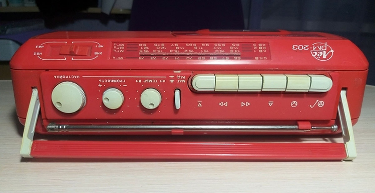 Портативная кассетная магнитола *Лёс РМ-203* выпускалась с начала девяностых, пусть будет 1992 год и неустановленным предприятием. Информации по магнитоле нет. По фото видно что это монофоническая магнитола с приёмом в УКВ-ЧМ диапазоне и в 3-х поддиапазонах КВ.