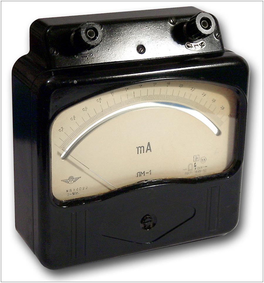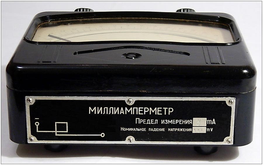 Микроамперметры и милливольтметры серии *ЛМ*. Выпуск с 1954 года. Микроамперметры и милливольтметры типа ЛМ (ЛМ,ЛМ-1) - это переносные лабораторные однопредельные приборы магнитоэлектрической системы с непосредственным отсчетом, предназначенные соответственно для измерения силы тока и напряжения в цепях постоянного тока. Микроамперметры и милливольтметры выпускались на следующие пределы измерений: 0 – 50; 0 – 75; 0 – 100; 0 – 150; 0 – 300; 0 – 500; 0 – 750; 0 – 1000 мка. 0 – 10; 0 – 15; 0 – 30 ; 0 – 45 мв. Класс точности – 0,5. Диапазон рабочих температур от +10 до +350 С. Изменение показаний прибора от ухода температуры в сторону от нормальной (+200С) не превышает +/- 0,5 % от верхнего предела шкалы на каждые 10 градусов. Изменение показаний прибора от влияния внешнего магнитного поля не превышает 2,5 % от данного показания. Габаритные размеры прибора 175х170х129 мм. Вес 1,7 кг. Цена прибора 296 рублей (1954 год).