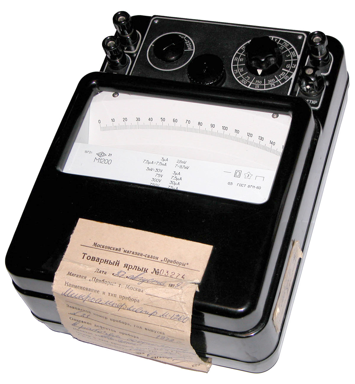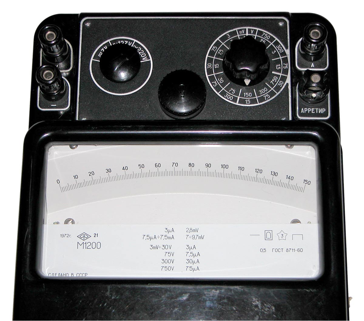 Милливольтмикроамперметры *М1200/Т* выпускались с 1972 года. Милливольтмикроамперметры **М1200** и **М1200Т** - 22-предельные, класс точности - 0,5. Пределы измерений 0,003...0,0075 мВ, 0,0075...0,3 мВ, 0,3...1,5 В,1,5...7,5...30...75...300...750 В. По току 0,003...0,0075...0,15...0,3...0,75...1,5...3...7,5мА. Ток полного отклонения от 0,3 до 75 мкА. Шкала со светоуказателем, длиной 150 мм. Питание шкалы от напряжения 7, 127 или 220 В. Габариты любого прибора - 200х275х115 мм. Масса 4 кг.