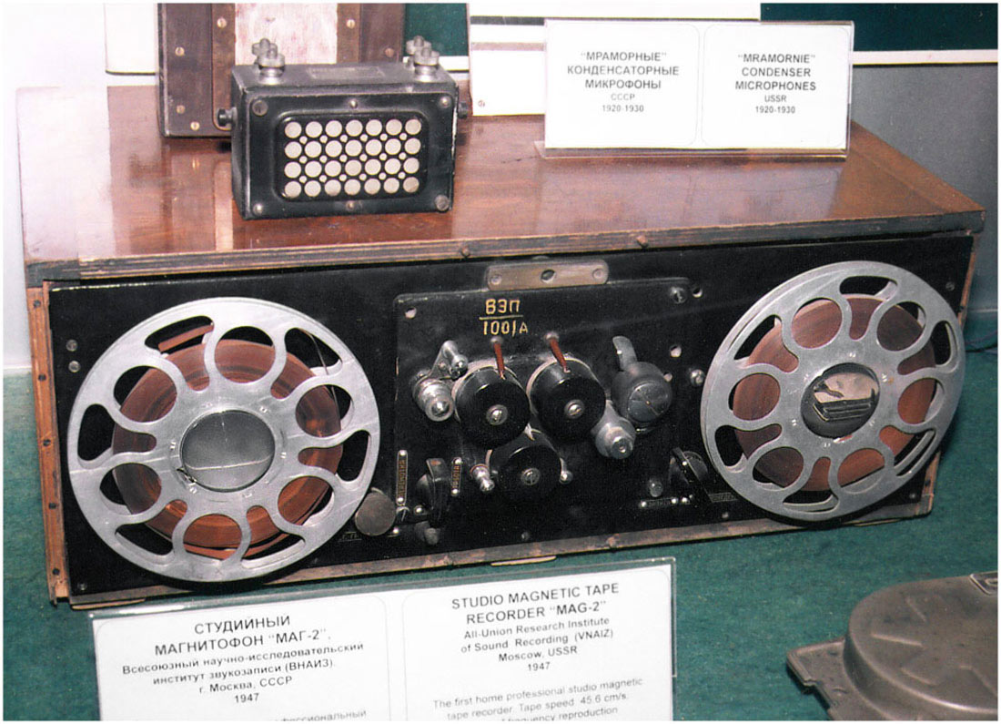 Студийный однодорожечный магнитофон *МАГ-2* выпускался с 1948 года. В магнитофоне применна магнитная лента типа *С* или *1*. Для меньшего износа магнитных головок при записи и воспроизведении, магнитную ленту заправляли по разному. Скорость протяжки магнитной ленты 45,6 см/сек. Тип применяемого микрофона *СДМ* или *РДМ*. Применённые радиолампы: 6Ж7 (2), 6Ф6 (2), 5Ц4С (1). Потребляемая мощность 200 Вт. Диапазон рабочих частот на ЛВ 70...6000 Гц. Напряжение на линейном выходе 0,5 В. Нелинейные искажения 1%. Магнитофон имел функции перемотки магнитной ленты в обоих направлениях. ЛПМ трёхдвигательный, двигатели *ДО-50*. В комплекте с магнитофоном шёл блок питания и акустическая система с усилителем.