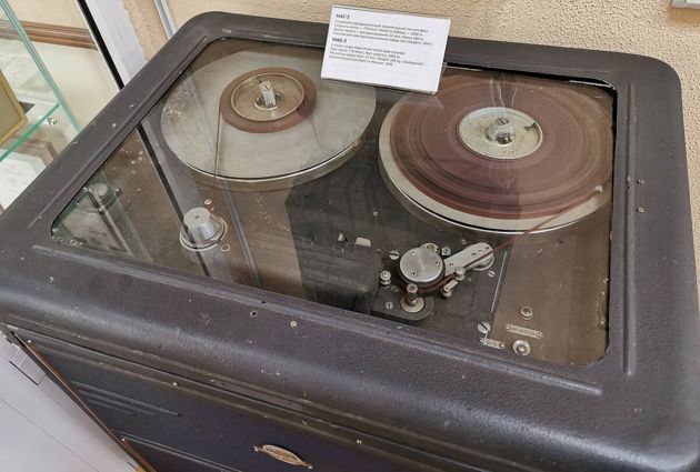 Универсальный однодорожечный магнитофон *МАГ-5* с 1949 года выпускал трест *Гостеасвет*. Магнитофон предназначен для записи и воспроизведения фонограмм на скоростях 77 и 38,5 см/сек. Время звучания одной катушки соответственно 22 и 44 минуты. Применённые электродвигатели: ДВС-У1 и ДПА-У2. Применённая магнитная лента типа *С* или *1* в рулонах по 1000 метров. Диапазон рабочих частот 50...10000 и 70...7000 Гц соответственно. Рекомендуемый микрофон МД-30. Применённые радиолампы: 6Ж8 (5), 6П6 (3), 6Н7 (1), 5Ц4С (1). Номинальная выходная мощность усилителя НЧ - 5 Вт. Тип применённого громкоговорителя 4А-1. Потребляемая от сети мощность 400 Вт. Коэффициент детонации 0,2%. До 1954 года вторая скорость была равна 45,6 см/сек. при этом диапазон рабочих частот был 60...8000 Гц. а время звучания 33 минуты. В магнитофоне применены раздельные усилители записи и воспроизведения.