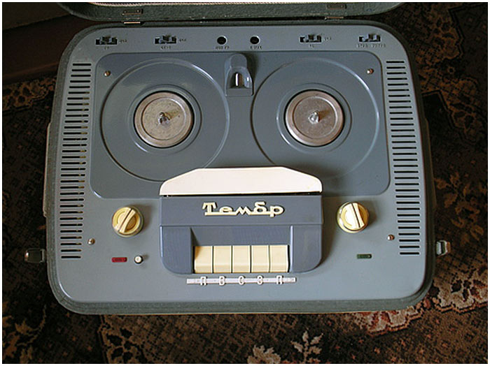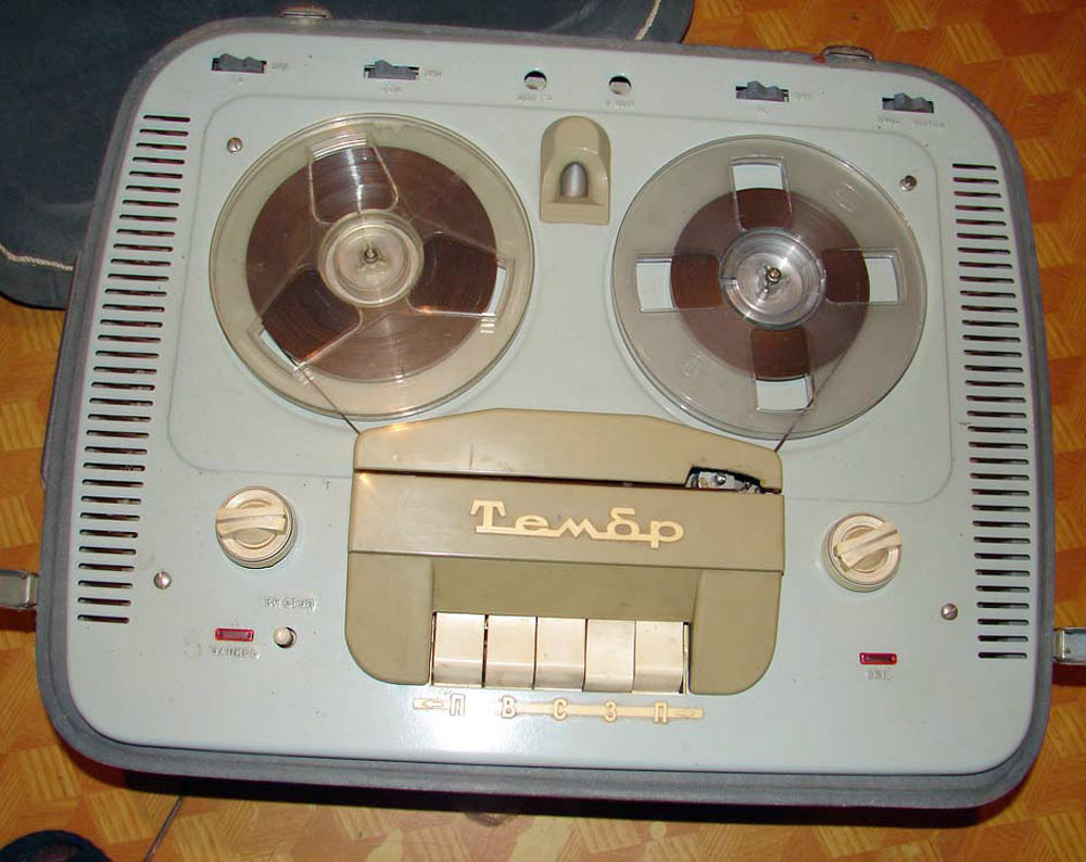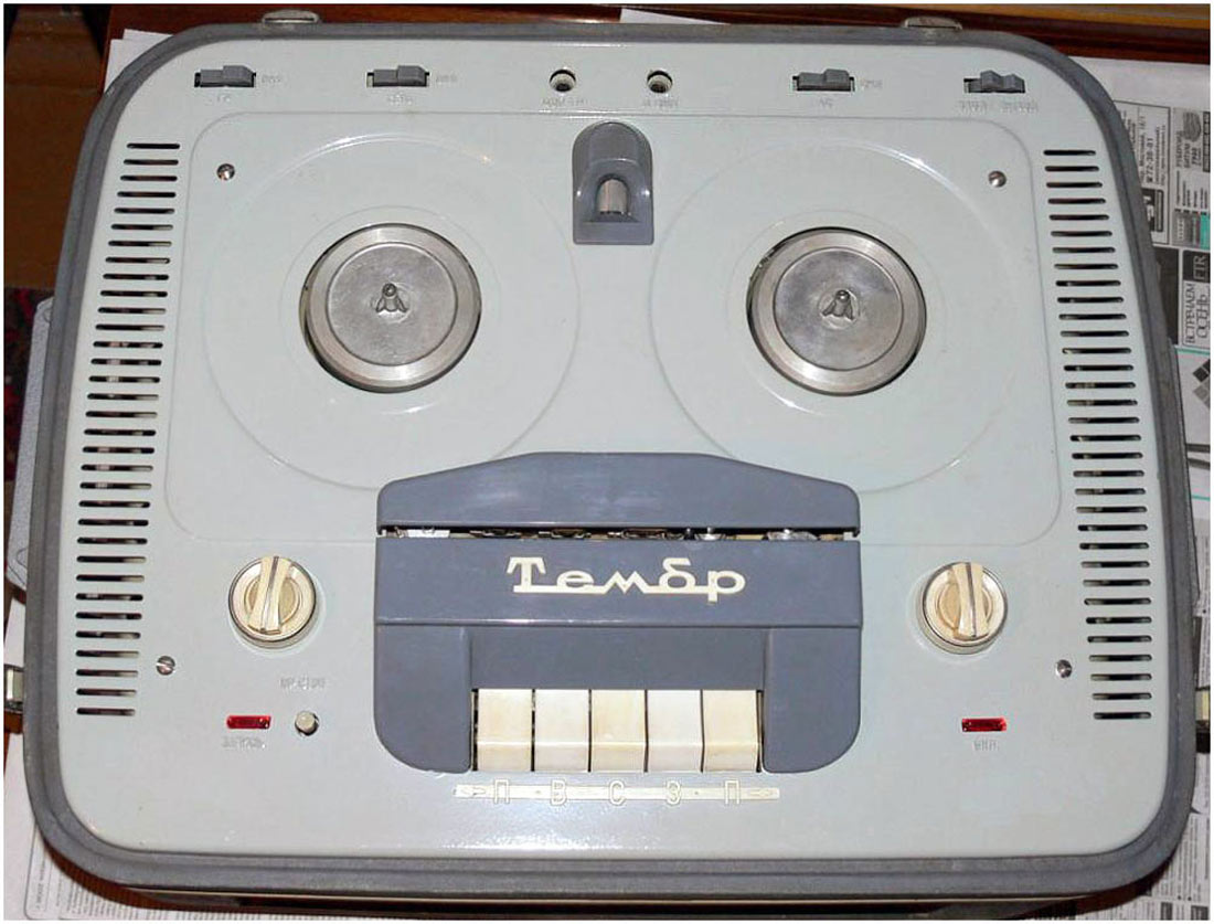 Катушечный магнитофон *МАГ-59М* (Тембр) с начала 1964 года выпускал Горьковский завод имени Петровского. С 1965 года магнитофон при той же конструкции, схеме и оформлении (кроме решётки громкоговорителей, в модели *МАГ-59М* она железная, а в модели *Тембр* пластамассовая, да незначительнызх изменений в схеме и конструкции) стал именоваться как **Тембр**. Предназначен для двухдорожечной записи и воспроизведения фонограмм. Переход с дорожки на дорожку осуществляется перестановкой и переворачиванием катушек. Магнитофон рассчитан на использование магнитной ленты типа 6. Ёмкость катушек 350 м. Продолжительность записи на одной дорожке 30 мин. Скорость 19,05 см/сек. Имеется двусторонняя ускоренная перемотка. В магнитофоне используются 2 раздельных усилителя для записи и воспроизведения, что позволяет прослушивать запись ещё в процессе ее проведения. Диапазон рабочих частот 40...12000 Гц. КНИ 4%. Относительный уровень шумов -40 дб. Коэффициент детонации 0,6%. Напряжение на линейном выходе около 0,7 В. Номинальная выходная мощность 3 Вт. Потребляемая мощность около 180 Вт. Магнитофон собран в деревянном, оклеенном декоративным материалом ящике с ручками переноса. Крышка ящика съёмная. Под ней находится декоративная панель. На панели укреплены крышки, дающие доступ к узлу магнитных головок и прижимному ролику. Над верхней панелью располагаются катушки с лентой, клавиши переключателя рода работы, кнопка паузы, ручки регуляторов уровня записи, громкости и тембра по ВЧ и НЧ. Габариты магнитофона 605х460х285 мм. Вес 33 кг. Цена 275 рублей.