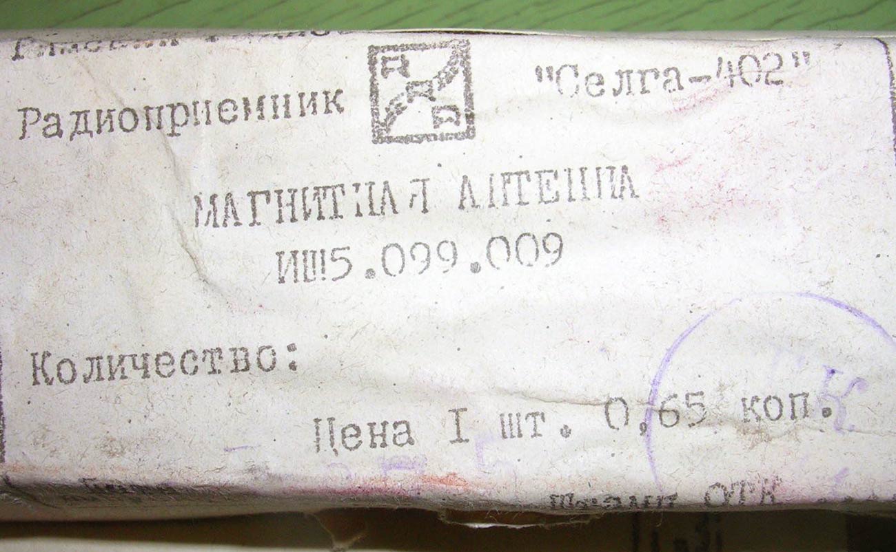 Магнитная антенна для радиоприёмника *Селга-402* выпускалась с 1970 года Рижским радиозаводом им. А.С.Попова. Магнитная антенна поставлялась как комплектующий узел для ремонта приёмников *Селга-402* в радиомастерские и для продажи в магазинах радиотоваров для нужд радиолюбителей.