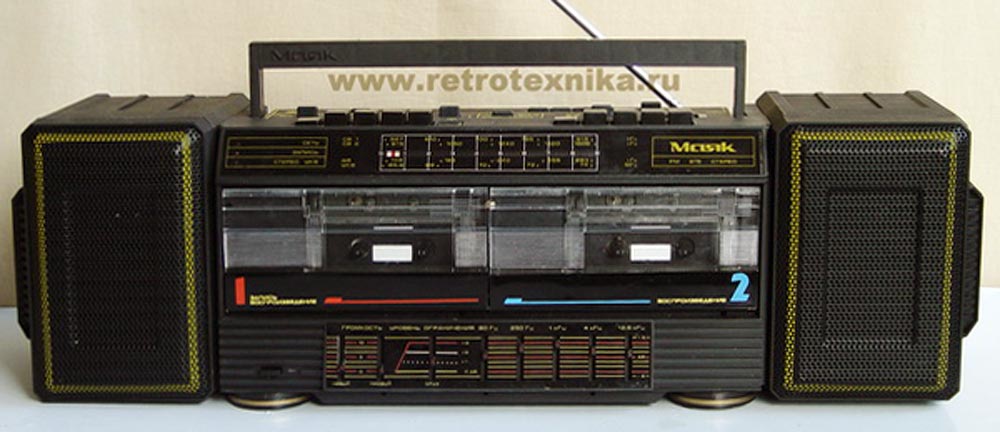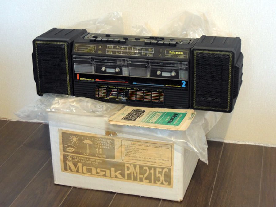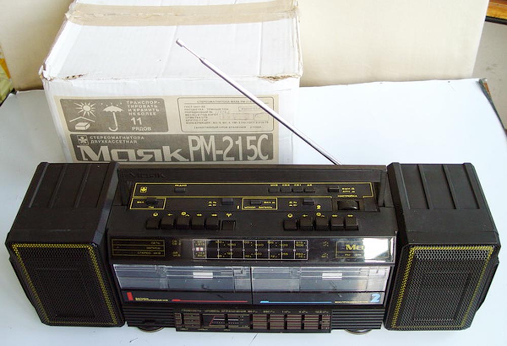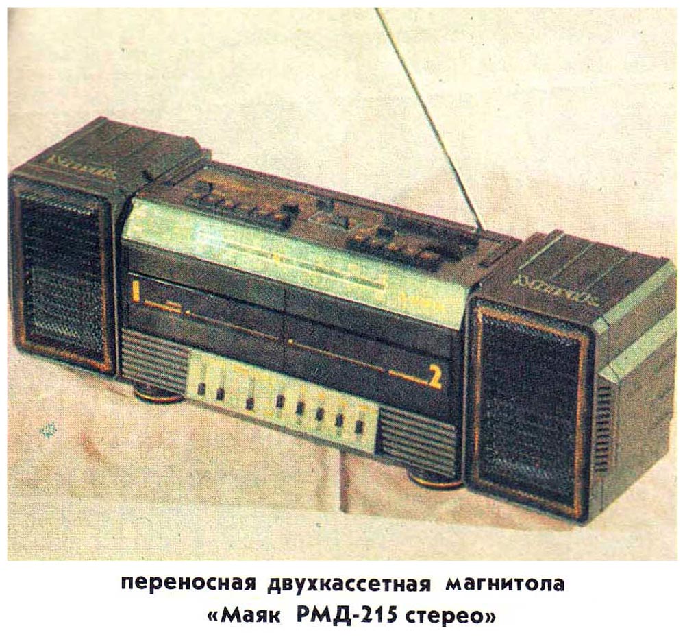 Двухкассетная стереофоническая магнитола *Маяк-215С* с осени 1987 года выпускалась Киевским заводом *Маяк*. Магнитола **Маяк-215** (с 1988 года **Маяк РМ-215С**, с 1990 года **Маяк РМД-215С**) предназначена для приёма монофонических радиопрограмм с AM в диапазонах ДВ, СВ и с ЧМ в диапазоне УКВ, а так же для записи, перезаписи и воспроизведения моно и стереофонических программ. Магнитола объединяет: всеволновый радиоприёмник и два лентопротяжных механизма, первый для записи и воспроизведения речевых и музыкальных фонограмм; второй только для воспроизведения фонограмм, а так же усилители, блок коммутации и питания, акустические системы. Магнитола позволяет производить запись с радиоприёмника, перезапись с кассеты на кассету и запись с внешних источников сигнала. Технические параметры: Скорость магнитной ленты 4,76 см/сек. Коэфициент детонации ± 0,4%. Диапазон частот при работе МП на ЛВ - 40...12500 Гц. Максимальная выходная мощность 2х3 Вт. Питание: сеть 220 В или 8 элементов А-343. Габариты модели 620х165х90 мм. Масса с АС - 5,5 кг.