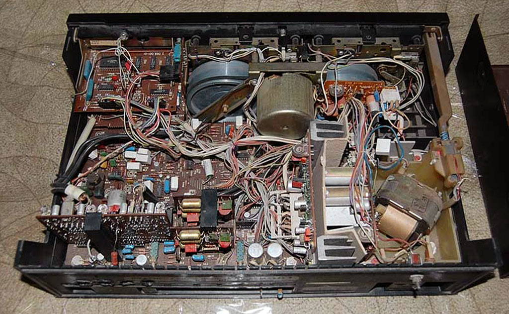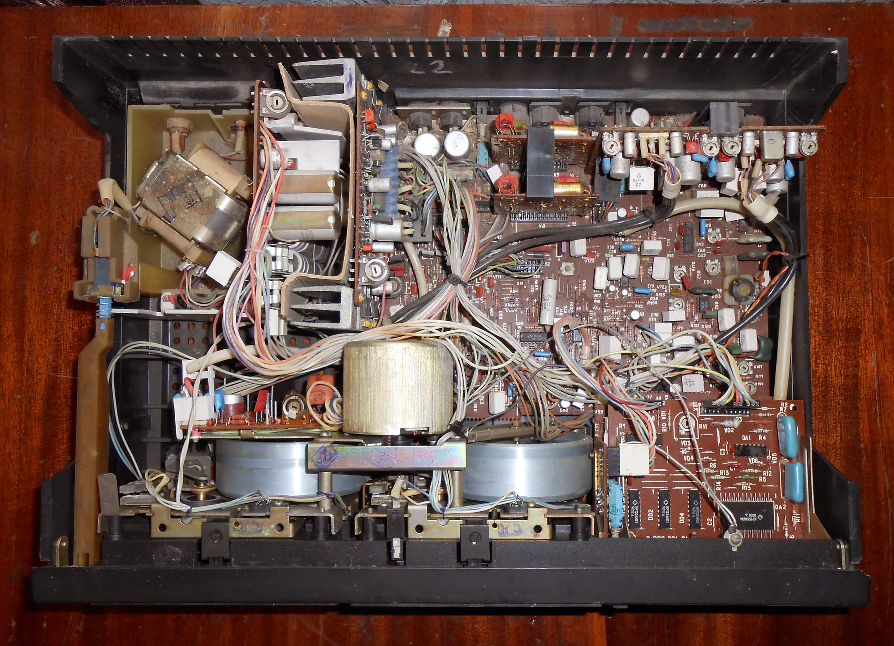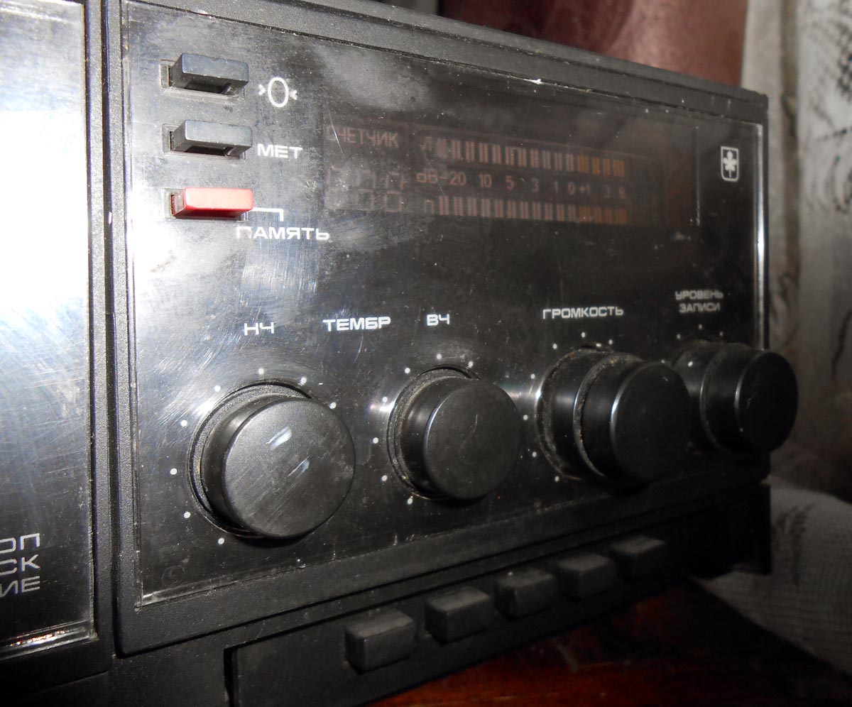 Двухкассетный магнитофон *Маяк М-242С* с 1992 года выпускал Киевский завод *Маяк*. Аппарат предназначен для записи фонограмм на магнитную ленту в кассетах МК и последующего их воспроизведения через АС или внешнее УКУ с АС. Есть возможность перезаписи фонограмм с кассеты на кассету. Можно использовать ленты с рабочим слоем из гамма-окиси железа и двуокиси хрома. В магнитофоне применено квазисенсорное электронно-логическое управление ЛПМ. Имеется: автостоп по окончании ленты; счётчик расхода ленты с режимом *Память*; демпфированные кассетоприёмники; люминесцентный индикатор уровня записи и воспроизведения; устройство ШП системы *Маяк*; световая индикация режимов работы; подсветка кассет; переключатель типа лент; регулировка уровня записи; тембры по ВЧ и НЧ; СДП; выход для телефонов. Коэффициент детонации 0,15%. Рабочий диапазон частот на ЛВ - 31,5...18000 Гц. Коэффициент гармоник на ЛВ не более 1,5%. Уровень шумов и помех в канале З/В -60 дБ. Номинальная выходная мощность 2х10 Вт, максимальная 2х15 Вт. Габариты магнитофона - 430х120х300 мм. Масса - 6,2 кг.