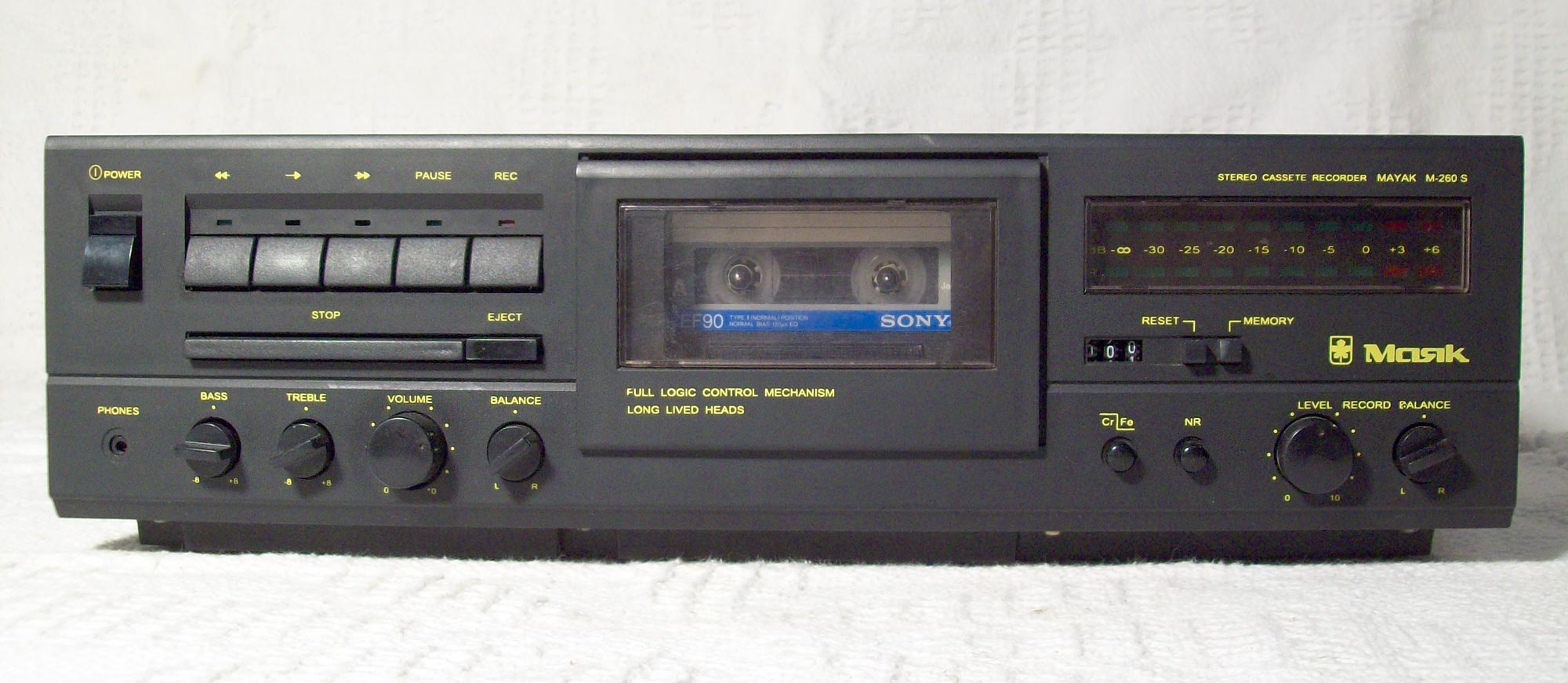 Стереофонический магнитофон *Маяк М-260С* с I-кв 1999 года выпускал Киевский завод *Маяк*. Предназначен для записи или воспроизведения фонограмм на магнитную ленту размещенную в кассетах МК. В магнитофоне предусмотрены функции: запись с любых источников НЧ сигналов; воспроизведение фонограмм через АС и головные телефоны; перемотка магнитной ленты в обе стороны; стирание фонограмм в процессе новой записи; система ШП; раздельная индикация уровня записи или воспроизведения в каждом канале; автоматический останов по окончании ленты и извлечении кассеты; счётчик расхода ленты; возможность отключения АС; возможность переключения режима работы без нажатия кнопки стоп; режим память по нулевому показанию счетчика расхода магнитной ленты; возможность раздельного регулирования тембра НЧ и ВЧ; режим пауза; индикация включения сетевого питания и всех режимов работы магнитофона.