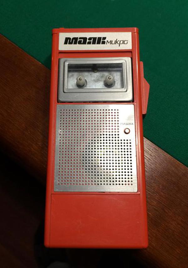 Малогабаритный микрокассетный магнитофон *Маяк-микро* опытно выпускался с 1986 года. Магнитофон (диктофон) *Маяк-микро* предназначен для записи на микрокассету МС-60 речевых программ (лекций, докладов,бесед) и последующего их воспроизведения. Аппарат имеет встроенный микрофон, может питаться от автономного источника (два элемента типа А-316 *Квант*) и от сети переменного тока через малогабаритный блок питания. В магнитофоне предусмотрены автоматическая регулировка уровня записи, работа от внешнего микрофона, подключение головных микротелефонов, внешнего усилителя или активной АС. Скорость протяжки магнитной ленты 2,38 см/с, коэффициент детонации ±0,8 %, рабочий диапазон записываемых или же воспроизводимых микротелефонами звуковых частот 300...5000 Гц, громкоговорителем 300...2550 Гц, номинальная выходная мощность 0,1 Вт. Габариты магнитофона 160х70х24 мм, масса 300 гр.