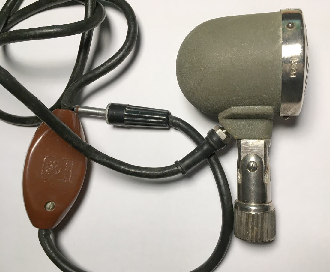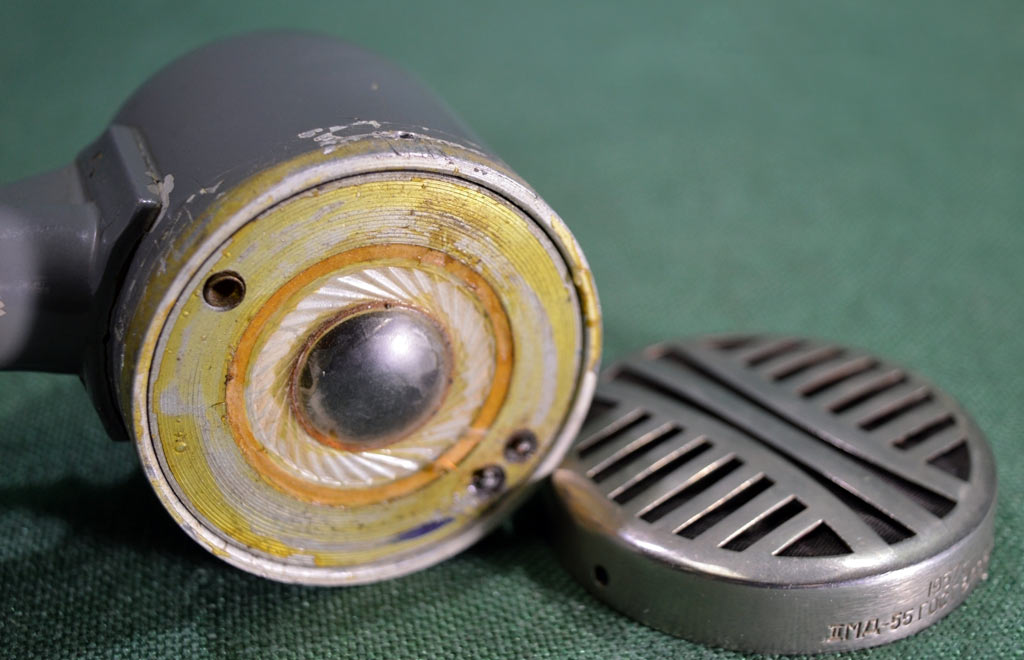 Динамический микрофон типа *МД-55* выпускался с 1955 года Тульский завод *Октава*. Микрофон предназначен для радиовещания, звукозаписи, систем звукоусиления и внестудийных передач. Подробности в инструкции. На фотографиях изображён и микрофон с переходным (согласующим) трансформатором в коричневой коробочке, доработанный Новосибирским заводом *ТочМаш* для комплектации магнитофона *Мелодия МГ-56*.