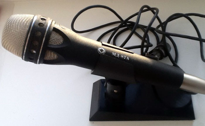 Концертный динамический микрофон *МД-87А* выпускался возможно с 1987 года Тульским заводом *Октава*. Односторонне направленный (суперкардиоида) с эластичной подвеской капсюля и встроенной ветрозащитой, обеспечивает эффективное подавление акустических, ветровых и механических помех, включая шумы, возникающие от контакта рук исполнителя с корпусом микрофона. В звуковом поле дальних источников частотные характеристики имеют спад к низким частотам, который выравнивается в рабочем положении по отношению к исполнителю за счет эффекта ближней зоны, что вместе с направленной пространственной характеристикой обеспечивает возможность работы на значительных уровнях громкости без опасности возникновения акустической *завязки*. Микрофон имеет диафрагму с двойным куполом, что обеспечивает достаточный уровень чувствительности в низкочастотном диапазоне. Частотный диапазон 40...16000 Гц. Чувствительность - 1,3...2,6 мВ/Па. Выходной импеданс 250 ±50 Ом. Уровень шумов 15 дБ. Температурный диапазон -20 / +50 С. Влажность 93 %. Размеры 50 x 197 мм. Вес 300 г.