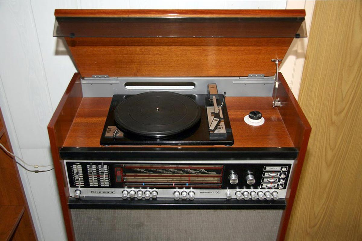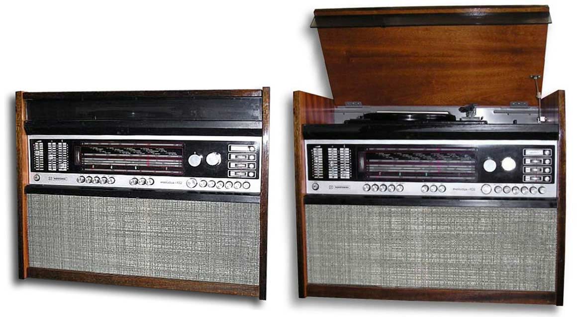 Радиола *Мелодия-102* с 1976 года выпускалась Рижским радиозаводом им. Попова. Радиола 1 класса **Мелодия-102** разработана на базе модели **Мелодия-101-стерео** и предназначена для приёма в диапазонах ДВ, СВ, трёх поддиапазонах КВ, УКВ диапазоне и воспроизведения грамзаписи. Радиола **Мелодия-102** сменила ламповую радиолу **Ригонда-102**. В модели применено ЭПУ - II-ЭПУ-60. В АС установлено 4 динамических головки 4ГД-35, одна 3ГД-31 и две 1ГД-40. В приёмнике имеется система БШН и фиксированная настройка на 3 радиостанции в диапазоне УКВ. В 1977 году вышел упрощённый вариант радиолы **Мелодия-102А**, в АС которой было установлено три громкоговорителя, один 4ГД-35 и два 1ГД-40. В остальном, за исключением корректировки номиналов деталей и нумерации по схеме обе радиолы одинаковы. Отсутствие громкоговорителя ВЧ особо не повлияло на АЧХ тракта НЧ. Чувствительность на внешнюю антенну: ДВ - 150 мкВ, СВ - 100 мкВ, KB - 100 мкВ, УКВ - 5 мкВ. При приёме на магнитную антенну в диапазонах ДВ- 2 мВ/м, СВ - 1.5 мВ/м. Селективность в диапазонах ДВ, СВ - 40 дБ. Система АРУ обеспечивает изменение выходного напряжения в 2 раза, при изменении входного в 1000 раз. Полоса звуковых частот AM тракта - 63...6300 Гц, ЧМ и ЭПУ - 63...12500 Гц. Номинальная выходная мощность 5 Вт, максимальная 9 Вт. Потребляемая мощность при приёме - 30 Вт, при работе ЭПУ - 42 Вт. Размеры радиолы без ножек - 630х500х338 мм, вес 23 кг.