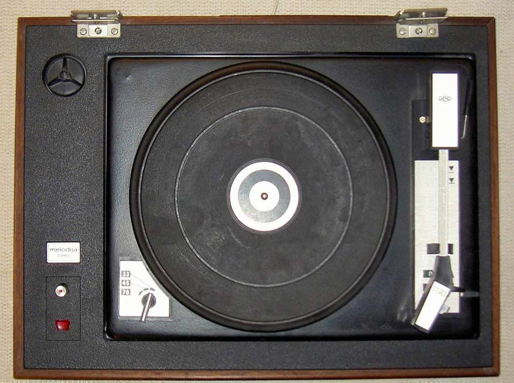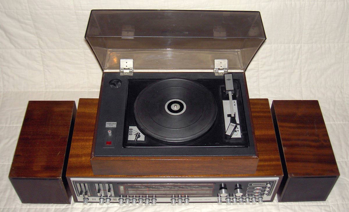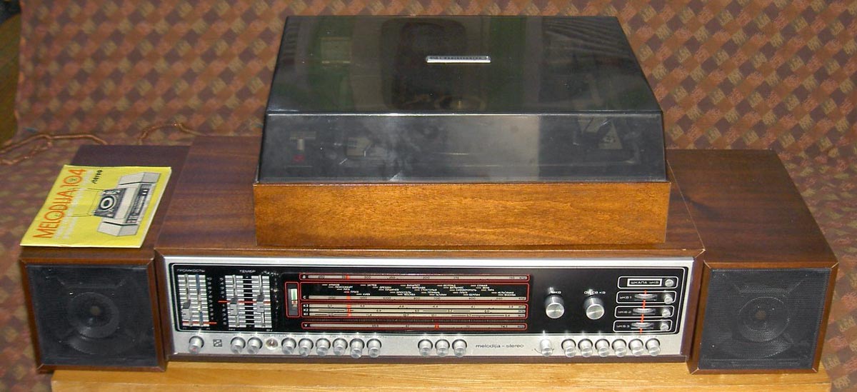 Сетевая стереофоническая блочная радиола *Мелодия-104-стерео* с 1978 года выпускалась Рижским радиозаводом им. А.С. Попова. Она работает в диапазонах ДВ, СВ, 3-х поддиапазонах КВ и УКВ. ЭПУ радиолы с магнитной головкой, воспроизводит грамзапись с моно и стереопластинок. В УКВ диапазоне приём ведётся с автоподстройкой. Есть возможность фиксированной настройки на три ЧМ радиостанции. Радиола имеет ступенчатую регулировку полосы пропускания в ПЧ АМ тракта, систему бесшумной настройки в диапазоне УКВ. Полоса воспроизводимых звуковых частот в тракте AM - 63...6300 Гц, ЧМ 63...12500 Гц. Чувствительность в диапазоне УКВ ЧМ - 2,5 мкВ. Номинальная выходная мощность - 2х6 Вт. Коэффициент гармоник 4%. Потребляемая мощность при приёме 46 Вт, воспроизведении грамзаписи 50 Вт. Габариты блока радиоприёма 168х630х300 мм, ЭПУ 175х455х330 мм, одной АС 157х157х300 мм. Масса комплекта 26 кг. Радиола выпускалась в 3-х вариантах комплектации.
