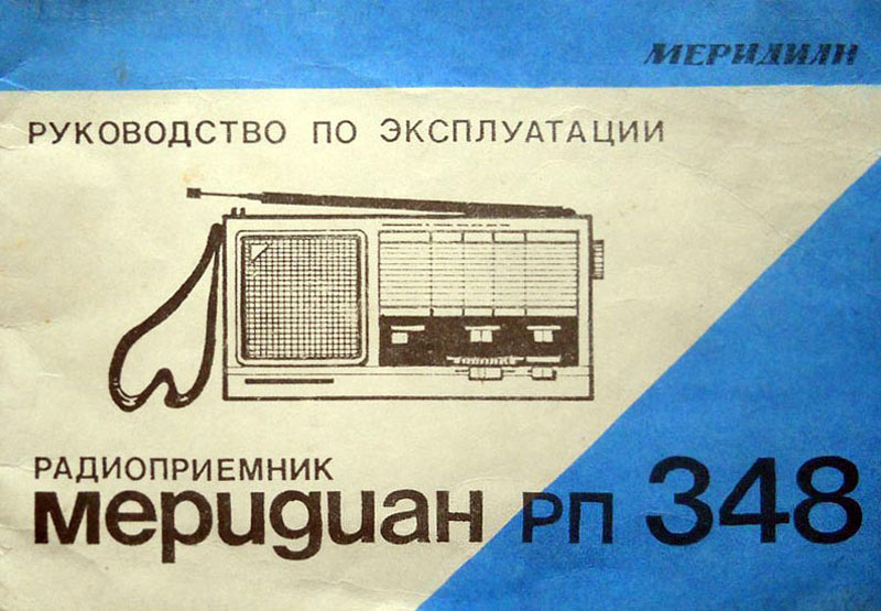 Портативный радиоприёмник *Меридиан РП-348* с начала 1988 года выпускал Киевский завод *Радиоприбор*, ПО имени С.П.Королёва. Приёмник рассчитан на приём в диапазонах ДВ, СВ, КВ-1 9,5...9,8 МГц; КВ-2 11,7...12,1 МГц и УКВ-ЧМ. Приём в KB и УКВ диапазонах ведется на телескопическую антенну, в ДВ, СВ на магнитную. Радиоприёмник выполнен по супергетеродинной схеме с одним преобразованием частоты и с совмещенным трактом AM/ЧМ в усилителе ПЧ. Точность настройки в УКВ тракте обеспечивается системой АПЧ. Каскады усиления по ПЧ охвачены системой АРУ. Питается приёмник от 4-х элементов А-316, а разрядка элементов контролируется по светодиоду, загорающемся при снижении напряжения до 4-х вольт. Имеются гнёзда для внешнего источника питания. Основные характеристики РП: Чувствительность в диапазонах: ДВ 2,0, СВ 1,2, КВ-1, КВ-2 0,5 мВ/м, УКВ 100 мкВ. Односигнальная избирательность по соседнему каналу, при расстройке гетеродина на плюс или минус 9 кГц - 26 дБ. Коэффициент гармоник в тракте: AM - 5%, в ЧМ - 3%. Диапазон звуковых частот, эффективно воспроизводимых по звуковому давлению тракта: AM - 315...3150 Гц, ЧМ - 315...6300 Гц. Потребляемый ток без сигнала не более 30 мА. Максимальная выходная мощность ЗЧ - 0,45 Вт. Габариты приёмника 210х41х116 мм. Масса без элементов питания - 500 грамм. С 1991 года завод выпускал радиоприёмник *Меридиан РП-248* - полный аналог предыдущего радиоприёмника *Меридиан РП-348*.