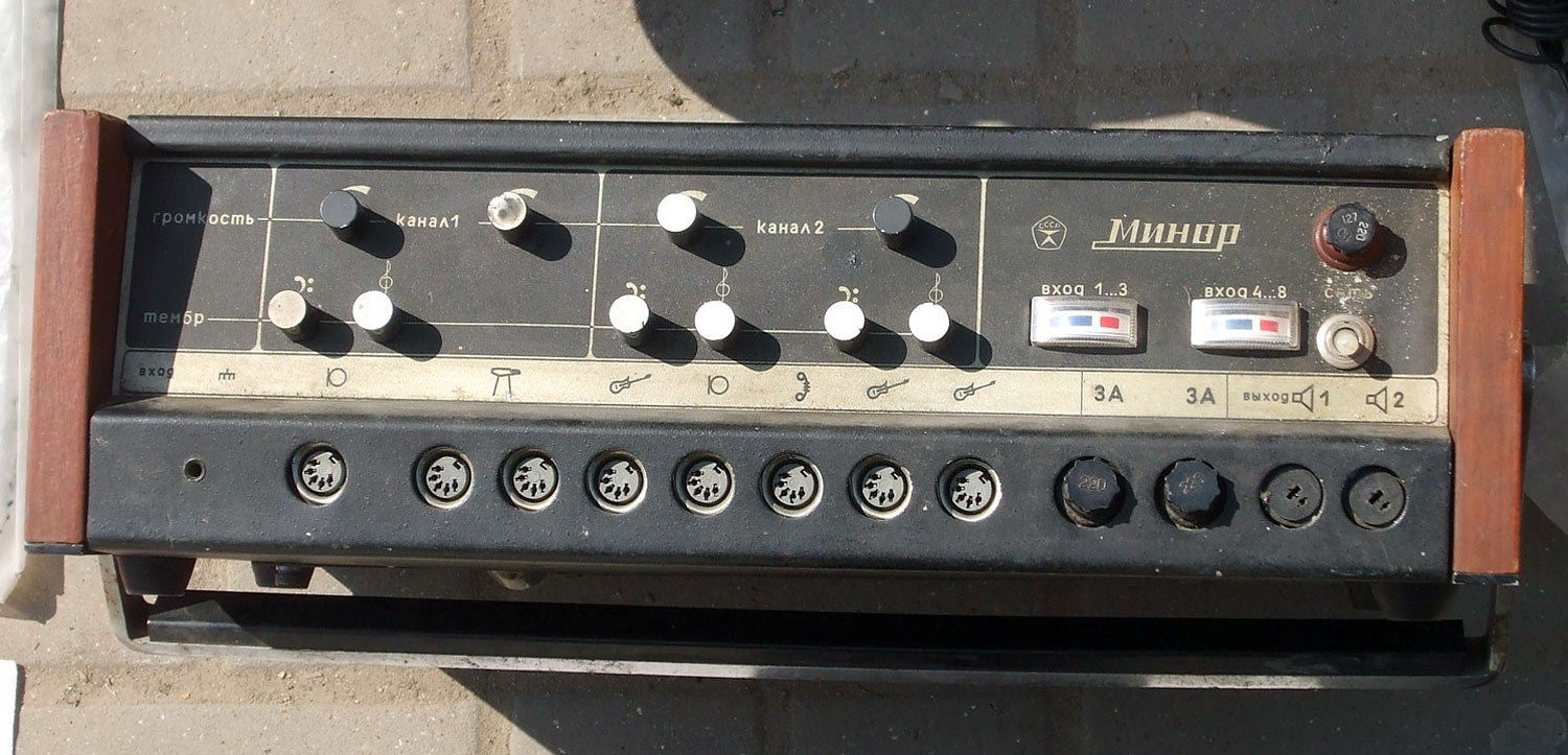 Двухканальный эстрадный усилитель *Минор* выпускался возможно с 1980 года Сарапульским заводом им. Орджоникидзе.