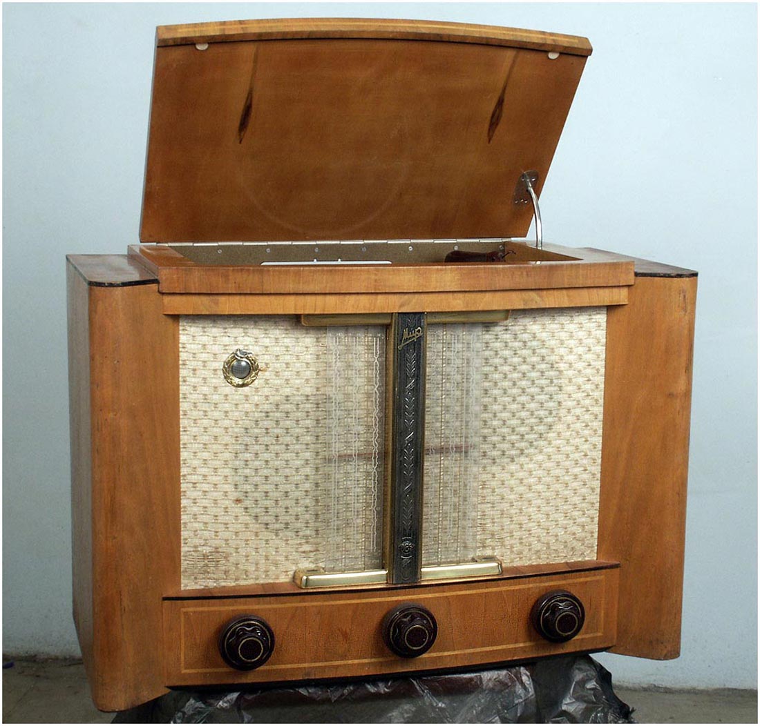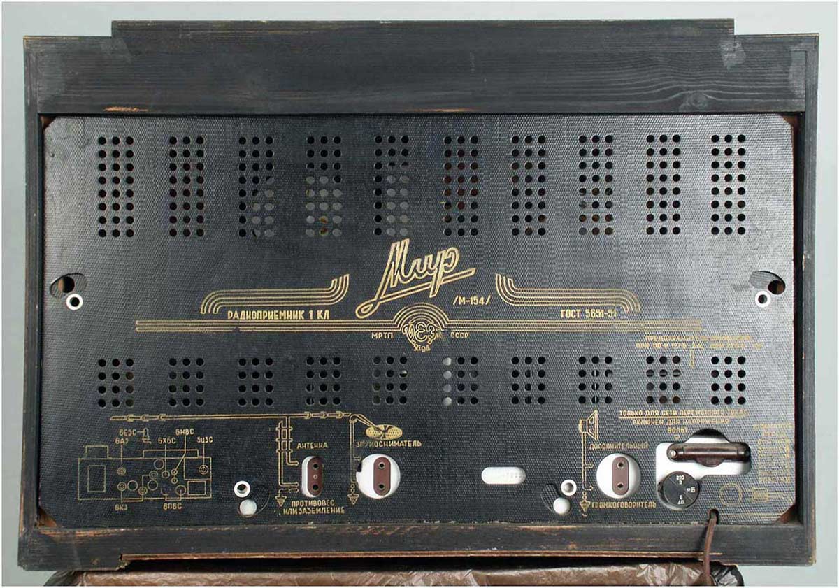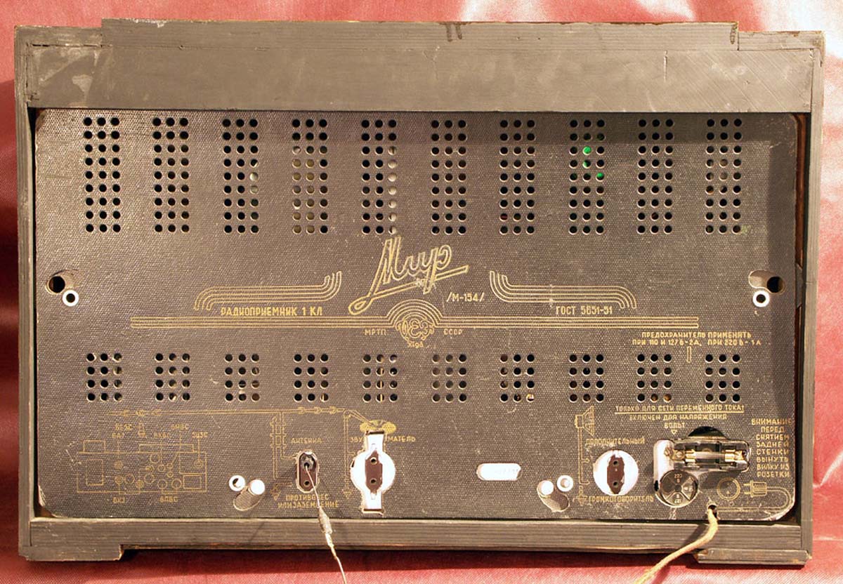 Радиоприёмник и радиола сетевые ламповые *Мир М-154* и *Мир М-154Р* с начала 1955 года выпускались на Рижском Государственном электротехническом заводе ВЭФ. Приёмник 1-го класса **Мир М-154* является модернизацией модели **Мир М-152* и кроме улучшенного внешнего вида и электроакустических данных, по техническим параметрам совпадает с ним. На его базе создана и радиола **Мир М-154Р* отличающаяся применением в ней универсального ЭПУ. Внешний вид моделей почти не изменился, за исключением переноса лампы для индикатора настройки с центра, на левую часть передней панели, замены радиоткани, а также небольших декоративных украшений футляра и лицевой панели. Уменьшены габариты футляра, заменены громкоговорители, уменьшено количество ламп до 11, в усилителе НЧ лампы 6П3С заменены на 6П6С, введён режим местного приёма, число КВ поддиапазонов уменьшено до 3. Громкоговорителей два: 4ГД-3ВЭФ и 4ГД-4ВЭФ, они одинаковы по АЧХ, но отличаются резонансными частотами. ЭПУ имеет 2 скорости вращения диска 78, 33 об/мин и состоит из двигателя типа ДАГ-1 с автостопом и пьезоэлектрического звукоснимателя ЗПК-54. Внешние габариты приёмника и радиолы идеинтичны. Масса приёмника 35 кг, радиолы 42 кг. Потребляемая мощность приёмником не более 100 вт, радиолой при проигрывании пластинок 120 вт.