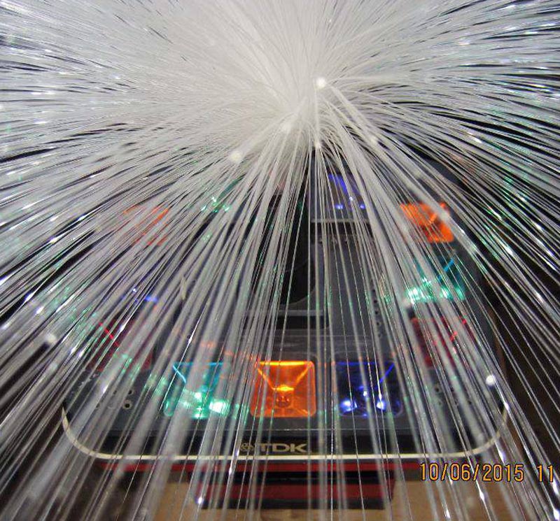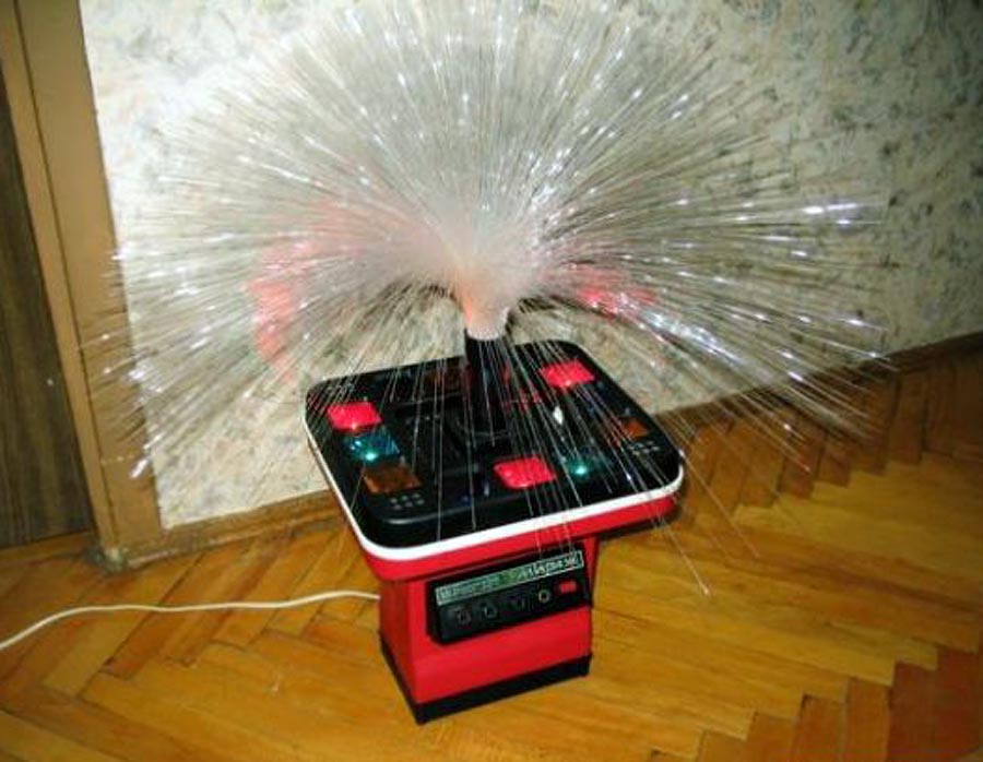 Цветомузыкальная приставка *Мираж ЦМП-2* с 1989 года выпускалась Конструкторским Бюро Автоматики НПО *Химавтоматика*. ЦМП предназначена для получения светоцветовых эффектов при прослушивании речевых и музыкальных программ от любых источников. Эффекты проявляются в виде радужного свечения нитей из светооптического волокна различными цветами и оттенками, а так же изменяющейся яркости. Диапазон рабочих частот приставки 20...20000 Гц разделён на четыре канала. Красный обозначает низкие частоты, зелёный - средние и синий - высокие. Жёлтый свет является фоновым. Масса приставки 4 кг. Цена 198 рублей.