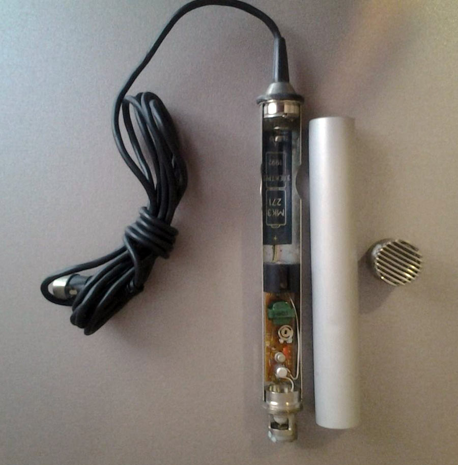 Электретный микрофон типа *МКЭ-271* выпускался с 1986 года Витебским ПО *Монолит*. Полупрофессиональный односторонненаправленный микрофон. Диапазон частот 20...20000 Гц. Чувствительность 2 мВ/Па. Неравномерность ЧХ 14 дБ. Выходное сопротивление 100 Ом. Габариты модели 25х205 мм. Масса с кабелем 240 гр.