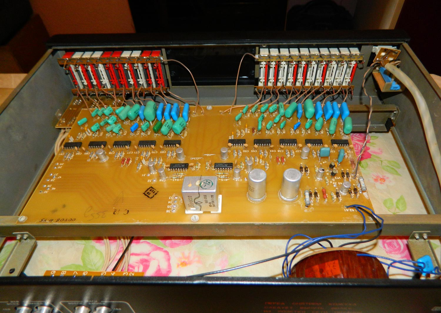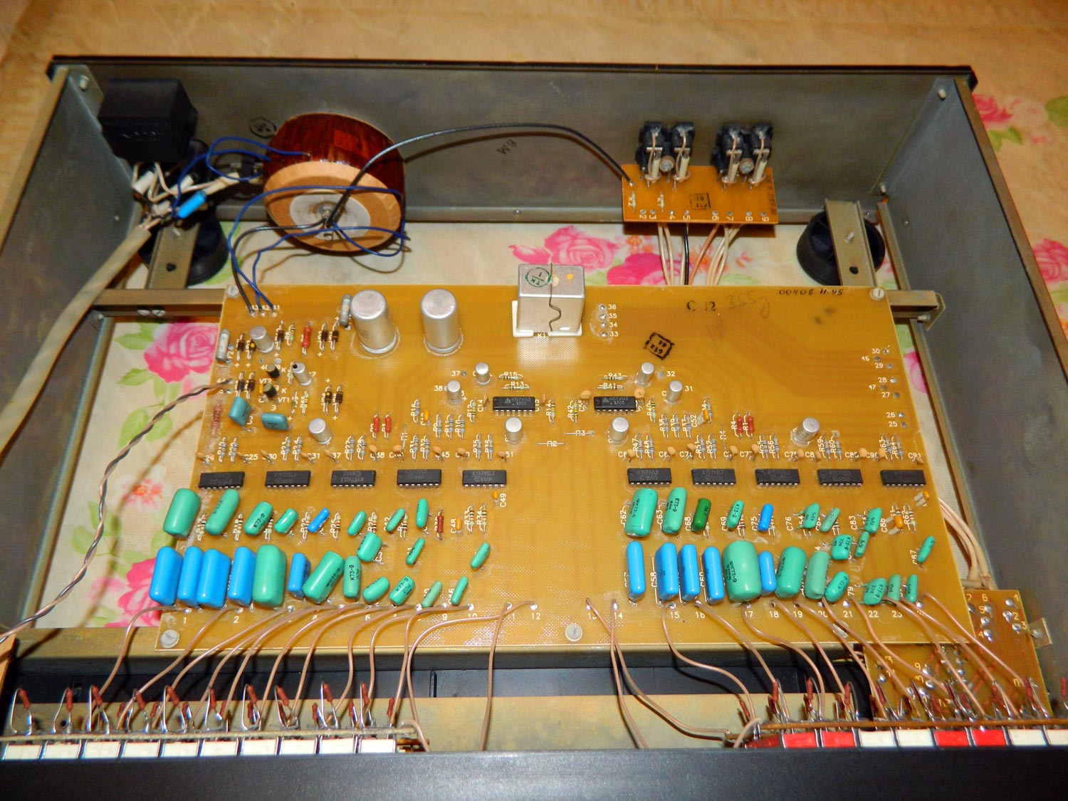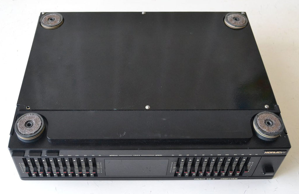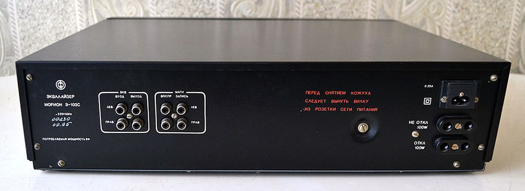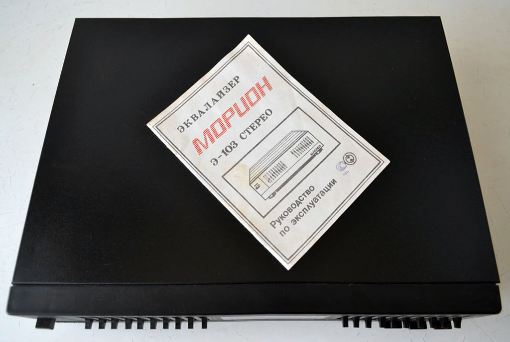 Эквалайзер *Морион Э-103-стерео* выпускался с начала 1995 года Пермским АО *Морион*. Эквалайзер *Морион Э-103 стерео* предназначен для корректировки АЧХ звуковых стереофонических фонограмм. Эквалайзер входил в радиокомплекс *Морион*, но продавался так же и как автономный аппарат. В 1995 году АО *Морион* выпустил небольшую партию эквалайзеров *Морион Э-103-2 стерео* со спектроанализатором.