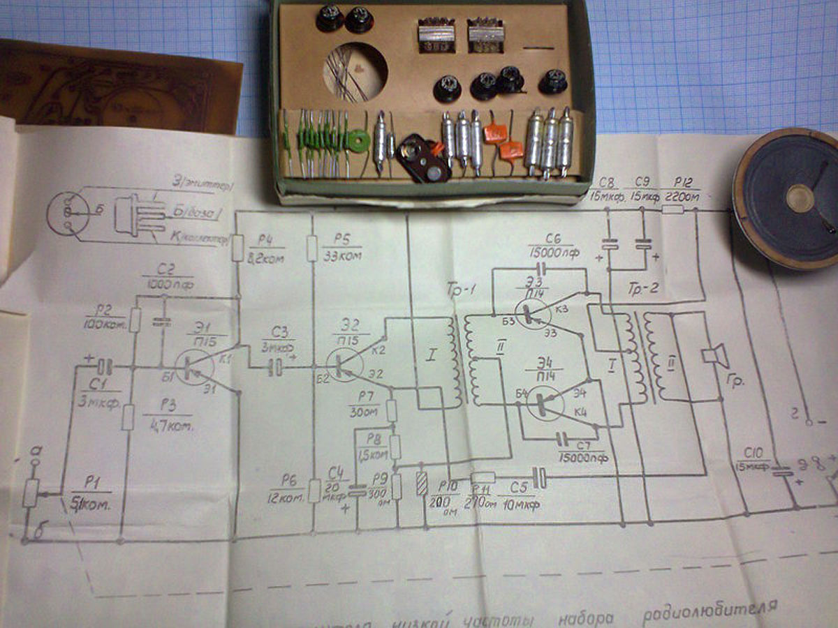 Набор для радиолюбителя *Усилитель низкой частоты* предположительно с 1964 года выпускал Лианозовский ЭМЗ. Усилитель предназначен для совместной работы с магнитофоном, электропроигрывателем, имеющим пьезоэлектрический звукосниматель, а так же с высокочастотной частью самодельного транзисторного радиоприёмника. Корпус мог быть изготовлен отдельно или использоваться общий, с перечисленными устройствами. Максимальная выходная мощность усилителя составляла 150 мВт. Диапазон воспроизводимых частот 450...3150 Гц. В зависимости от размеров корпуса нижний показатель мог быть выше и начинаться с 280...300 Гц. Питание 9 вольт от батареи *Крона* или от других элементов соединённых последовательно, что бы общее напряжение составляло 9 вольт.