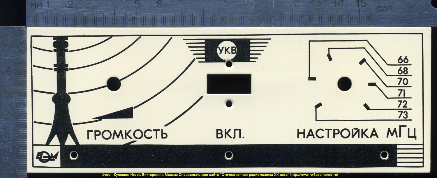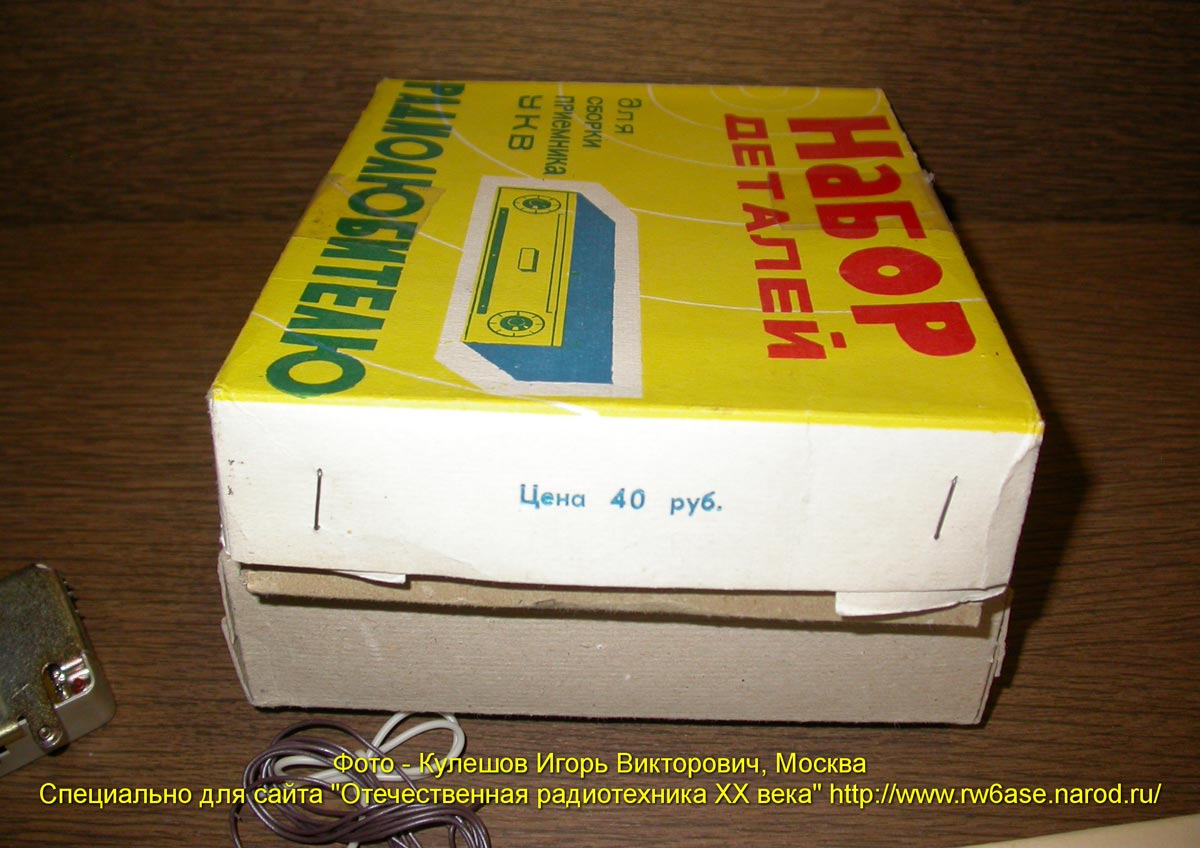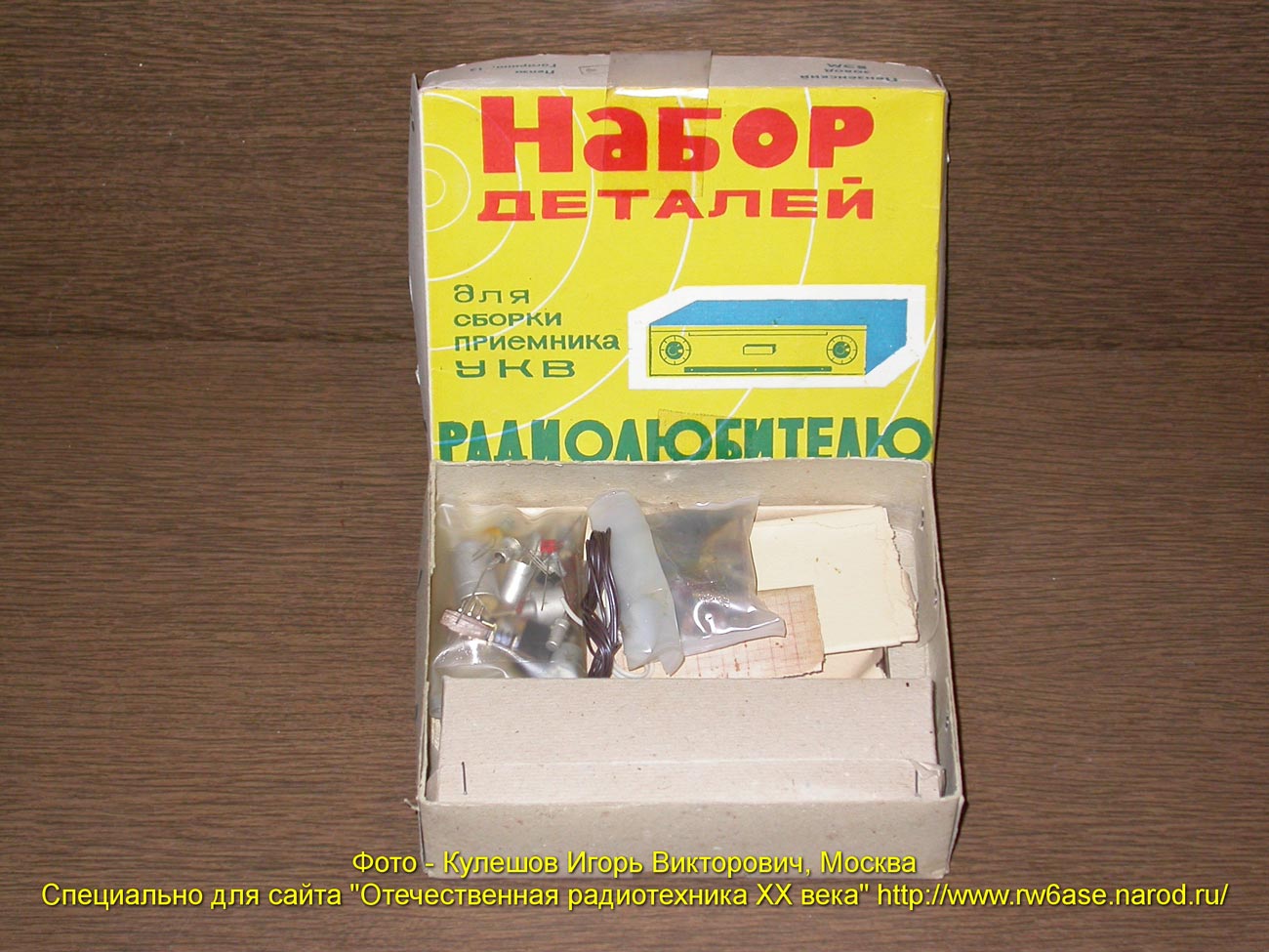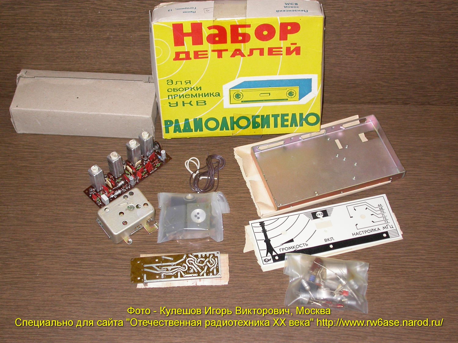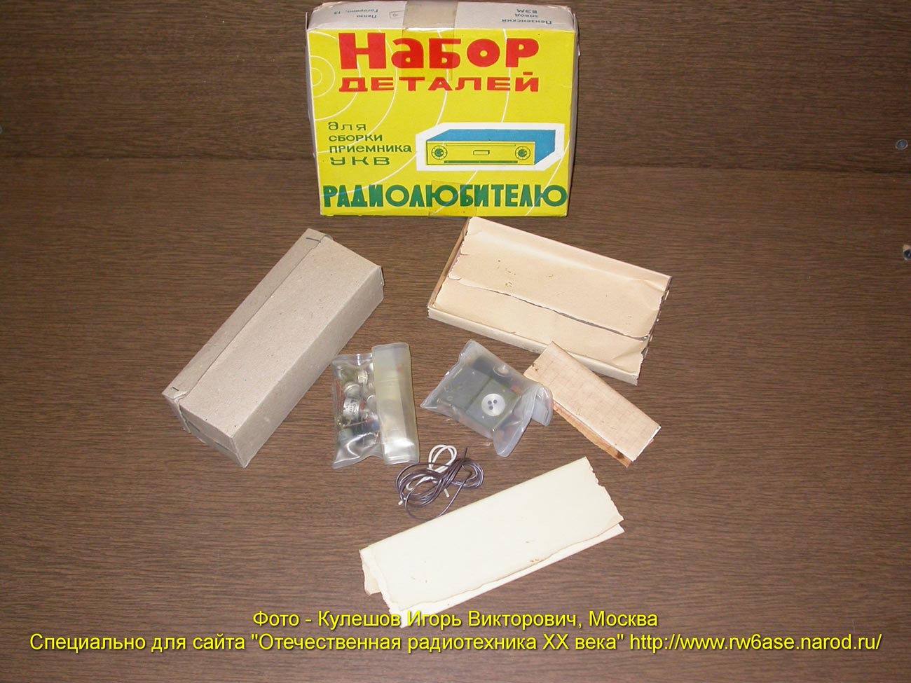 Набор деталей радиолюбителя для сборки приёмника УКВ с 1981 года выпускал Пензенский завод *ВЭМ*. Набор деталей позволяет радиолюбителю средней квалификации собрать действующий УКВ-ЧМ радиоприёмник со следующими параметрами: Диапазон принимаемых приёмником частот не уже 65,8...73 МГц. Реальная чувствительность не менее 30 мкВ. Номинальная выходная мощность 1,5 Вт. Напряжение питания 12 В. Максимальный потребляемый ток до 300 мА. Такой же набор деталей с громкоговорителем Б/У выпускался заводом ещё с 1979 года. Вот его страница на сайте РТ20: http://rw6ase.narod.ru/00/rk1/ukw_rk.html