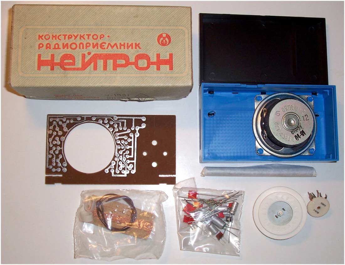 Радиоприёмник *Нейтрон* из радиоконструктора с 1985 года выпускало Запорожское ПО *Гамма*. Радиоприёмник **Нейтрон** соран на семи кремниевых или германиевых транзисторах и предназначен для детей среднего и старшего школьного возраста. Он представляет собой полный набор радиодеталей, узлов и футляра для сборки радиоприёмника прямого усиления, работающего в неполном диапазоне средних волн (СВ). На радиоприёмник днём можно было прослушивать радиостанции удалённые до 200 километров. Радиоконструкторов с кремниевыми транзисторами было выпущено в разы больше.