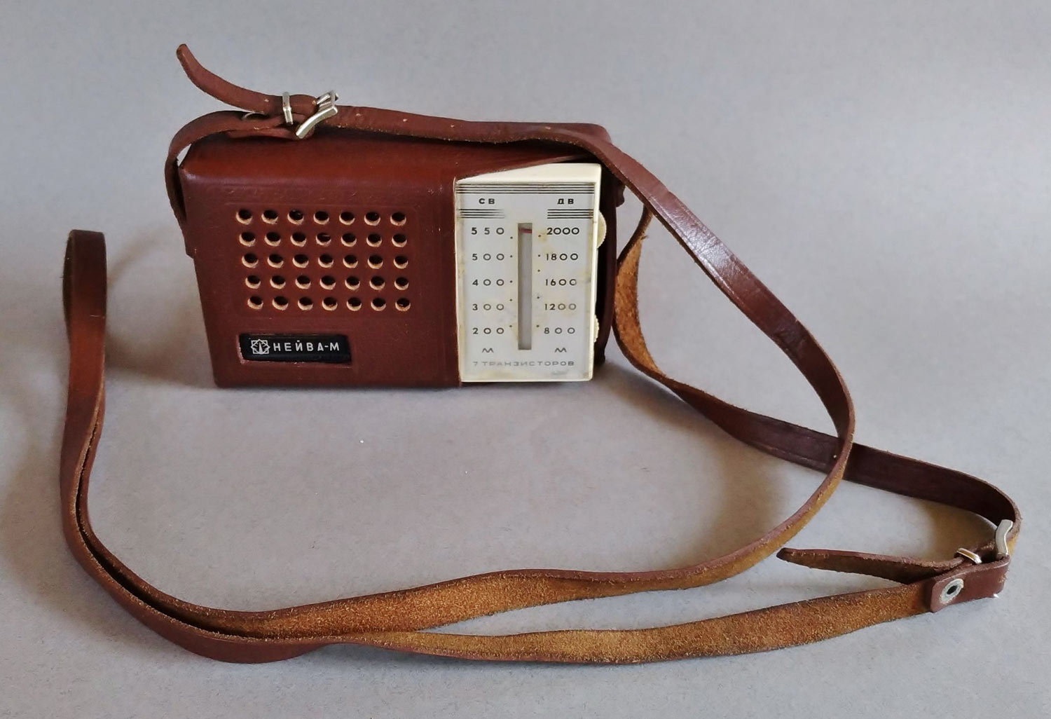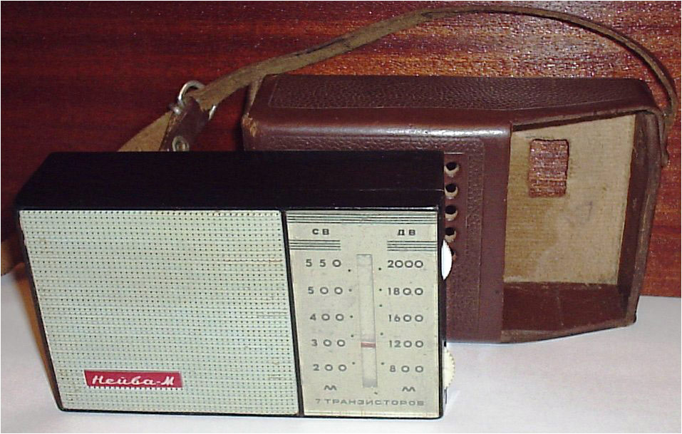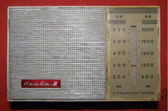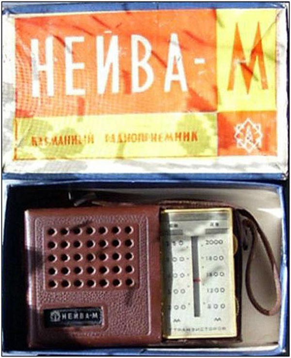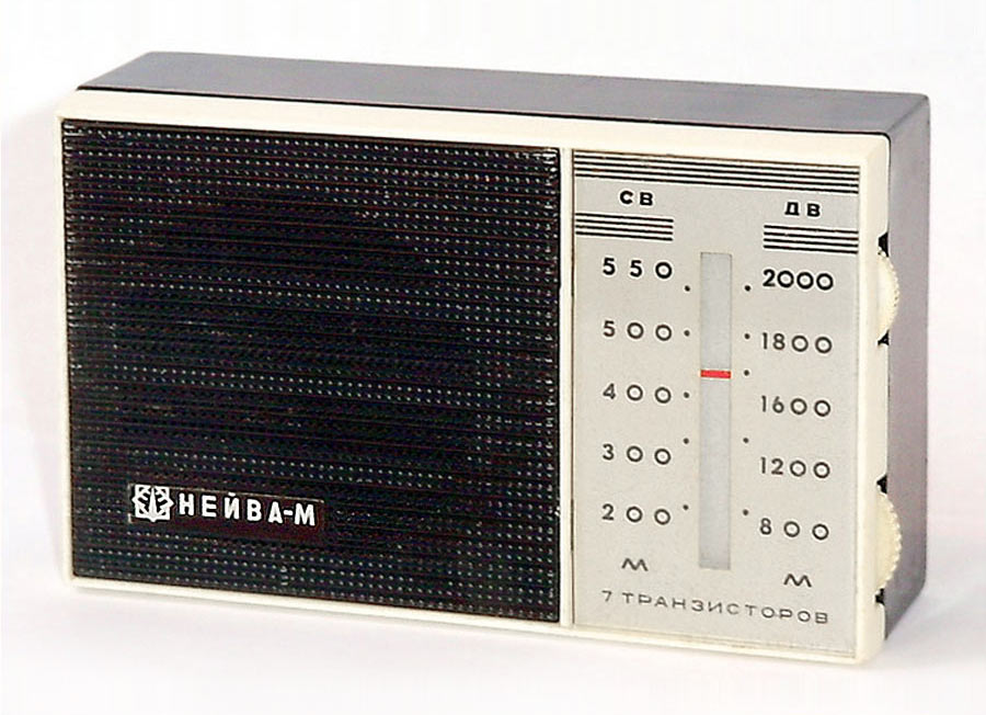 Портативный радиоприёмник *Нейва-М* с 1967 года выпускал Каменск-Уральский приборостроительный завод. Радиоприёмник четвёртого класса **Нейва-М** предназначен для приёма радиовещательных станций на магнитную антенну в диапазонах ДВ, СВ. Он выполнен на семи транзисторах и одном п/п диоде. Hoминaльнaя выходная мощность 60 мВт. Чувствительность на внутреннюю антенну в диапазоне ДВ - 1,5, СВ - 1,0 мВ/м. Избирательность по соседнему каналу на ДВ - 20, СВ - 16 дБ. Ослабление по зеркальному каналу на ДВ - 26, СВ - 20 дБ. ПЧ 465 кГц. АЧХ НЧ тракта по звуковому давлению в диапазоне 450..3000 Гц и имеет неравномерность 14 дБ. Ток покоя 6 мА. Питание осуществляется от батареи Крона-ВЦ. Приёмник сохраняет работоспособность при снижении напряжения до 5,6 В. Для внешней антенны и телефона имеются гнёзда. Размеры модели - 113х70хх34 мм, масса с батареей и футляром 330 гр.