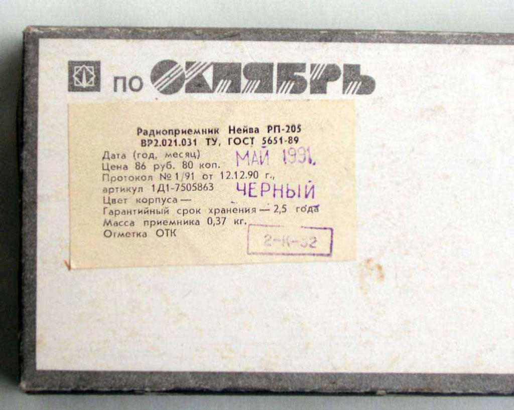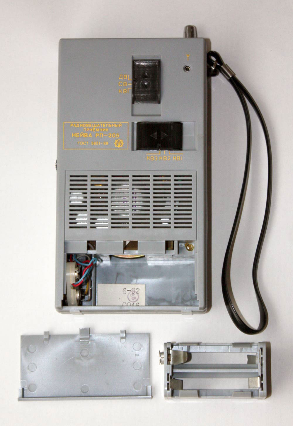 Портативный радиоприёмник *Нейва РП-205* с 1990 года выпускал Каменск-Уральский приборостроительный завод. **Нейва РП-205** это пятидиапазонный ДВ, СВ и КВ (3 поддиапазона) переносной радиоприёмник, являющимся копией приёмника **Нейва-305**. В радиоприёмнике **Нейва РП-205** в диапазонах ДВ, СВ приём производится на магнитную антенну, а в КВ на встроенную телескопическую. В тракте ПЧ могли стоять контурные фильтры или пьезокерамический фильтр, в зависимости от этого чувствительность в диапазоне ДВ была 1 мВ/м, СВ 0,8 мВ/м, в поддиапазонах КВ 250 мкВ. С пьезо-фильтром чувствительность была ниже и составляла в диапазоне ДВ 2,5 мВ/м, СВ 1,5 мВ/м, в поддиапазонах КВ 450 мкВ. Селективность составляла соответственно 20 дБ и 30 дБ. Номинальная выходная мощность 100 мВт, а максимальная 200 мВт. Питание приёмника универсальное, от четырёх элементов А-316, от батареи типа *Крона*, что не приветствовалось или от внешнего 6-ти вольтового блока питания. Первоначальная цена радиоприёмника 61 рубль 80 копеек, затем в 1991 году она была повышена до 86 рублей 80 копеек, это было связано с начинающимися в стране инфляционными процессами. В 1992 году выпуск радиоприёмника **Нейва РП-205** был прекращён.