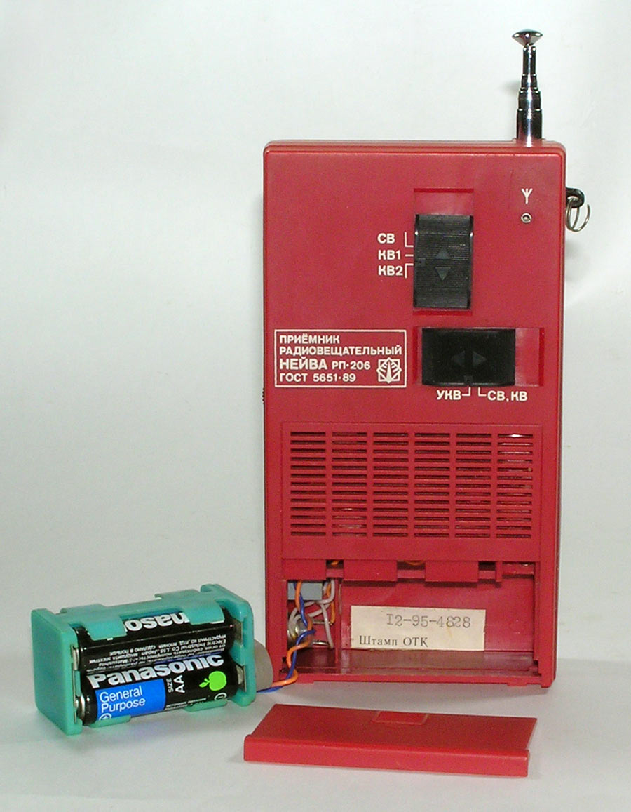 Портативный АМ/ЧМ радиоприёмник *Нейва РП-206* с 1994 года выпускало Каменск-Уральское ПО *Октябрь*. Радиоприёмник *Нейва РП-206* обеспечивает приём радиостанций в диапазонах СВ на встроенную магнитную антенну, в диапазонах КВ и УКВ на телескопическую. Есть возможность подключения внешней антенны и миниатюрного телефона. Питание приёмника осуществляется от 4-х батарей А-316 общим напряжением 6 В или от внешнего источника питания через специальное гнездо. Основные характеристики: Диапазон волн (частот) СВ, КВ - 25 м, КВ - 31 м, ЧМ 65...75 МГц или FM 88...108 МГц (экспортный вариант). Номинальная выходная мощность 100 мВт. Чувствительность в СВ - 1,5 мВ/м, КВ - 450 мкВ, УКВ - 100 мкВ. Габаритные размеры приёмника 177х96х39 мм. Его масса без батарей 370 грамм. С 2000 года радиоприёмник *Нейва РП-206* выпускался с разным оформлением передней панели, приуроченным к различным знаменательным и юбилейным датам.