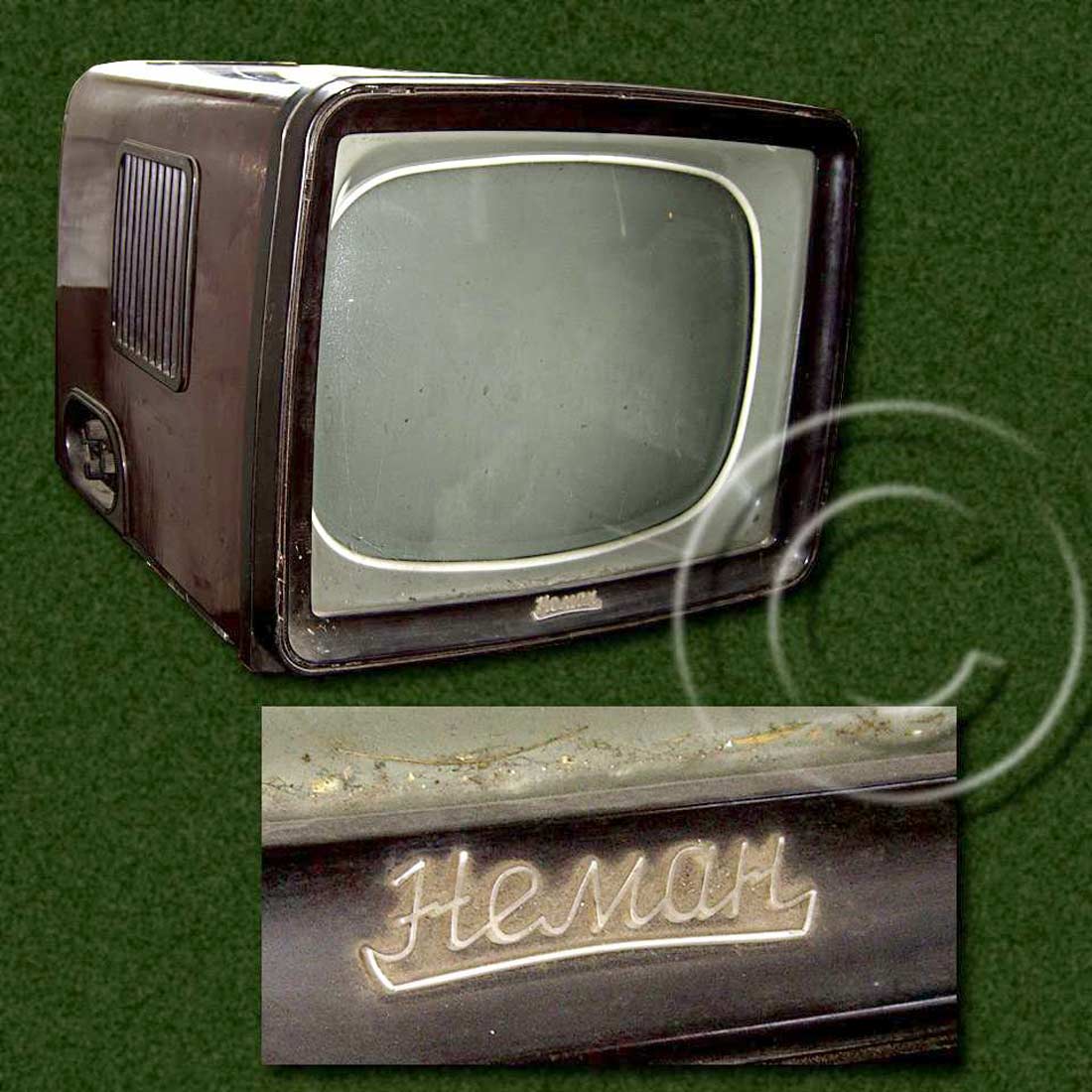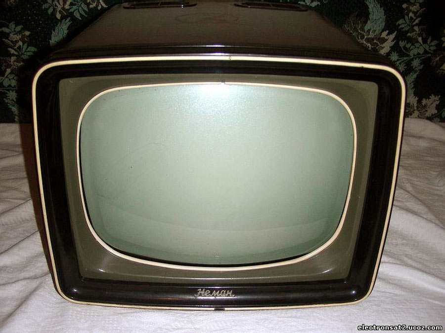 Телевизор *Неман* с 1959 года выпускал Минский радиозавод. 12-ти канальный телевизор **Неман** создан на базе телевизора *Воронеж* и так же выпускался в трёх вариантах, отличаясь весом, оформлением и кинескопами. В модели **Неман** - 35ЛК2Б, **Неман-2** - 43ЛК3Б (стеклянной), **Неман-3** - 43ЛК2Б (метало-стеклянной). По схеме и конструкции модели одинаковы. Вес 1-й модели 23 кг, 2-й и 3-й - 26 кг. Футляр изготовлен из фанеры ценных пород дерева или имитации, переднюю часть занимает экран кинескопа и металлическая крашенная вставка. Обрамление для кинескопа и щитки для ручек управления выполнены из пластмассы. В моделях применено 14 радиоламп и 11 диодов. Размеры любого из телевизоров 445х380х430 мм. Телевизор питается от электросети 127 или 220 вольт, потребляя мощность около 150 Вт. Размер изображения в первой модели 210х280 мм, во второй и третьей соответственно больше. Чувствительность в 200 мкВ обеспечивает приём на наружную антенну в радиусе до 70 км от студии. Громкоговоритель типа 1ГД-9 расположен справа футляра, а для улучшения звука на левой стенке сделан вырез. Громкость достаточна для озвучивания средней комнаты. В модели применены автоматические регулировки АРУ и АПЧ и Ф. Основные ручки для управления выведены на правую боковую стенку футляра в нишу, вспомогательные в нишу слева. Монтаж деталей печатный. Цена 1-й модели с отделкой ценными породами дерева 300 рублей, с имитацией ценных пород 288 рублей (1961 г). Третий вариант телевизора **Неман** выпущен значительной серией, около 4-х миллионов экземпляров. Завершил завод выпуск телевизора **Неман-3** в 1968 году. Радио №11/1965, ст.33