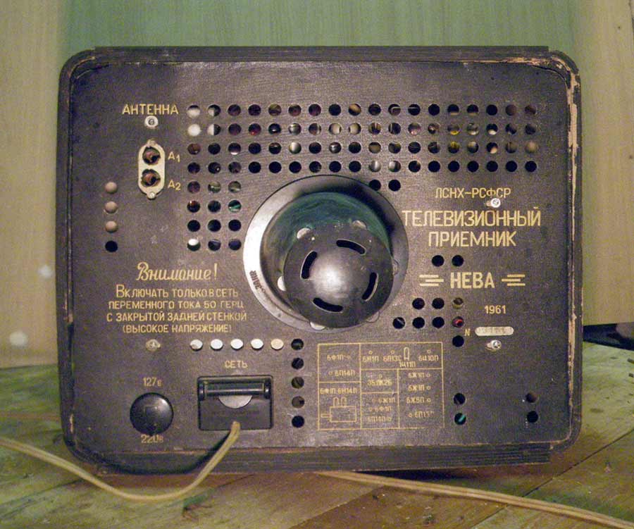 Телевизионный приёмник чёрно-белого изображения *Нева* с I-кв 1959 года выпускал Ленинградский завод имени Козицкого. Телевизор 3-го класса **Нева** обеспечивает приём программ на любом из 12 каналов. Он содержит 15 радиоламп, 11 диодов и кинескоп 35ЛК2Б. Размер изображения 210х280 мм. Чувствительность в 200 мкВ позволяет принимать передачи на наружную антенну в радиусе до 60 км от телестудии. Разрешающая способность по горизонтали в центре изображения 350 линий, по вертикали 450 линий. Мощность, потребляемая от сети 130 Вт. Громкоговоритель 1ГД-9 расположен в нижней части телевизора, под кинескопом. Такое расположение громкоговорителя обеспечивает достаточную громкость в комнате средней величины. В ТВ применены АРУ и АРЯ, что стабилизирует его работу и упрощает регулировку. Телевизор выпускается в футляре из дерева, панель обрамления сделана из пластмассы. Конструктивно телевизор состоит из 6 блоков, 5 из которых выполнены методом печатного монтажа. Блоки укреплены на вертикальном каркасе и соединяются перемычками. Ручки основных регуляторов, таких как громкость с выключателем сети и яркость выведены по бокам пластмассового обрамления телевизора внизу. Остальные ручки регуляторов и переключатель ТВ каналов выведены справа футляра в нишу. Другие ручки управления размещены в нише, на левой стенке. Габариты телевизора 500х350х400, масса 21 кг. Модель **Нева-Д** выпускавшаяся с 1960 года, кроме внешнего вида не отличается от базового телевизора. Габариты телевизора 360х425х400, масса 18 кг.