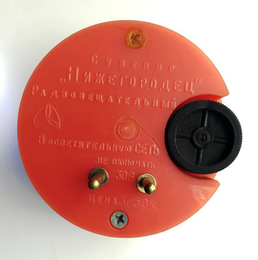Малогабаритный сувенирный абонентский громкоговоритель "Нижегородец" производился с 1984 года Горьковским заводом аппаратуры связи им/ А.С.Попова. Выпуск был приурочен к юбилею - 55-летию Горьковской области, чему был посвящен и особый дизайн оформления лицевой панели: на ней был изображен герб области в декоративном обрамлении. Лицевая панель изготавливалась в 2 вариантах: в голубом или чёрном цвете на фоне красной радио-ткани. Сетевая вилка установлена сзади АГ. АГ включался непосредственно в радиорозетку, c напряжением 30 в. Диаметр корпуса 8,5 см, толщина 4,5 см (6,5 см с вилкой).