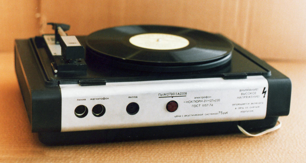 Электрофон сетевой транзисторный *Ноктюрн-211* с I-кв 1981 года выпускал Грозненский радиотехнический завод. Сетевой транзисторный электрофон второго класса **Ноктюрн-211** предназначен для прослушивания грампластинок любых форматов в монофоническом режиме. В комплект входит выносная акустическая система 8АС-4 которая состоит из двух громкоговорителей 4ГД-35-05. Цена электрофона 75 рублей.