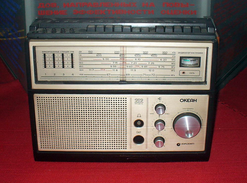 Переносной радиоприёмник *Океан-212* с 1987 года опытно выпускало Минское ПО *Горизонт*. Всеволновый радиоприёмник второй группы сложности предназначен для приёма радиостанций в диапазонах ДВ, СВ 4 поддиапазонах КВ и в диапазоне УКВ. Радиоприёмник отличает высокая чувствительность в диапазоне УКВ. Питание универсальное - от электрической сети или от 6-ти батарей типа А-343. Кроме плавной настройки на частоту имеется и фиксированная настройка на четыре заранее настроенных радиостанции в УКВ диапазоне. Радиоприёмник имеет систему АРУ и АПЧГ в УКВ-ЧМ диапазоне. Номинальная выходная мощность 1 Вт. Диапазон частот в ЧМ диапазоне 125...10000 Гц.