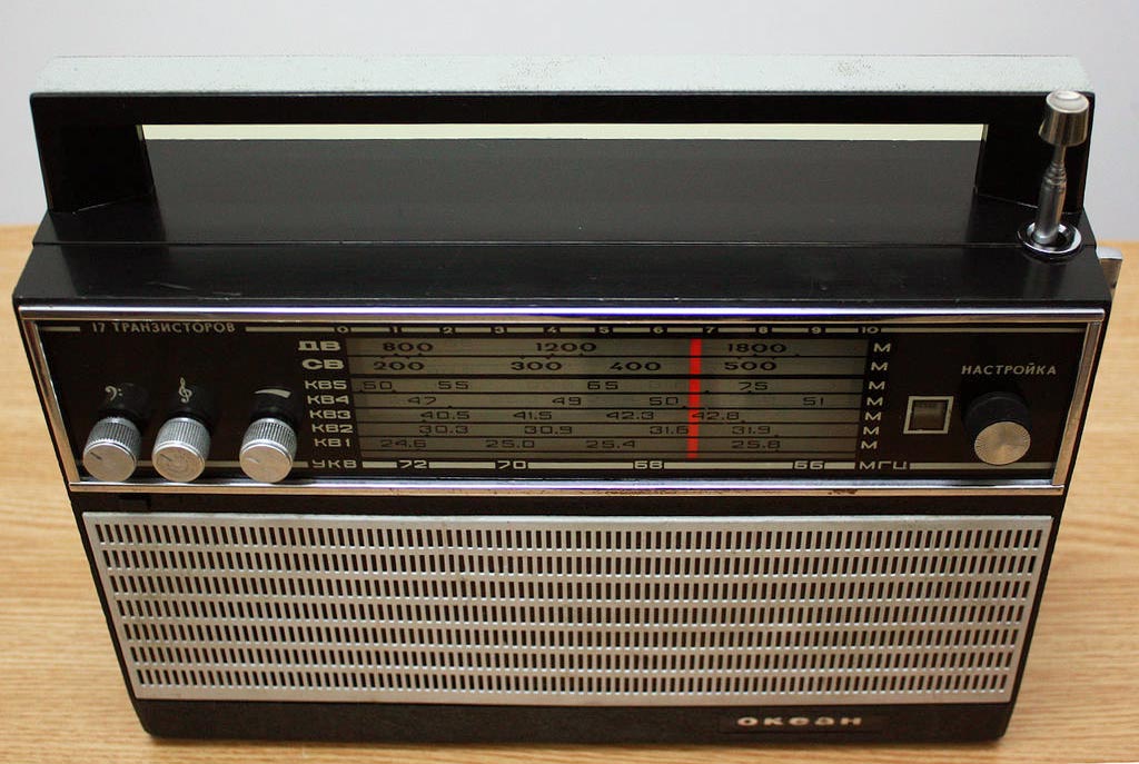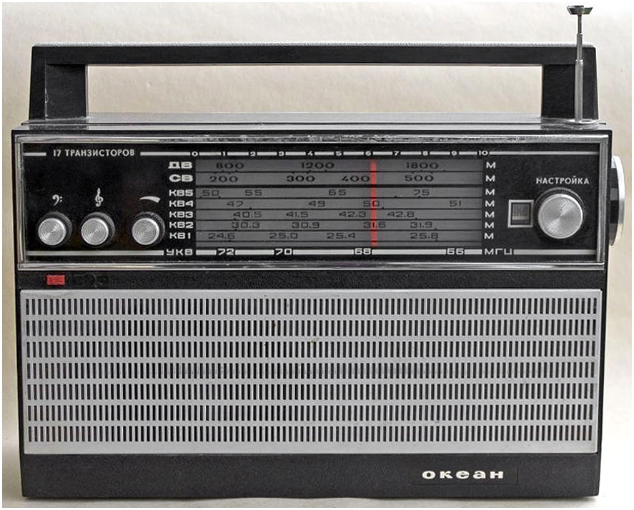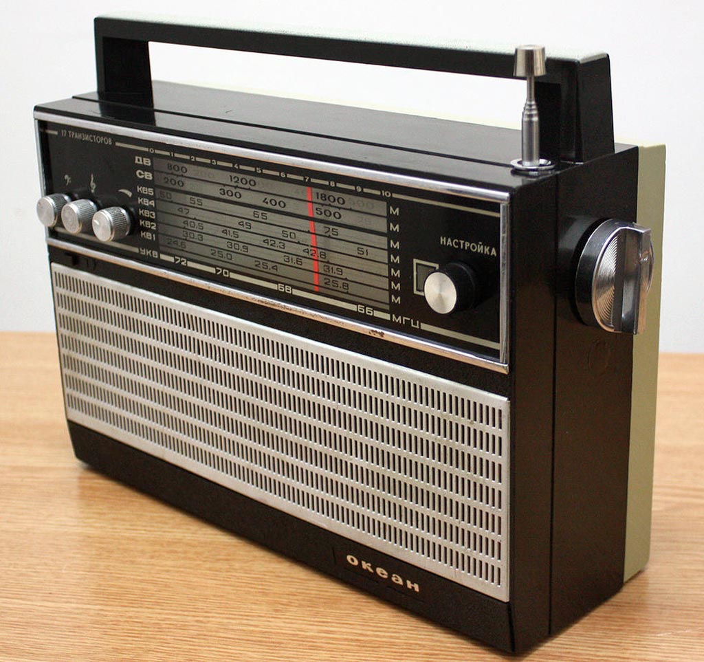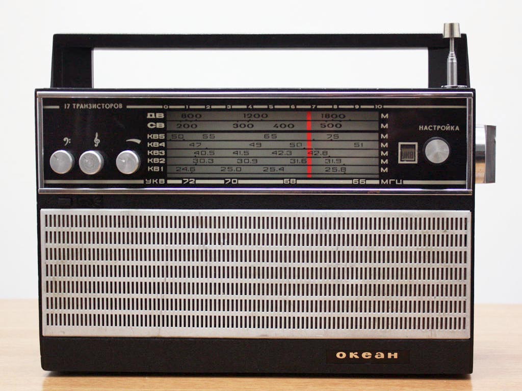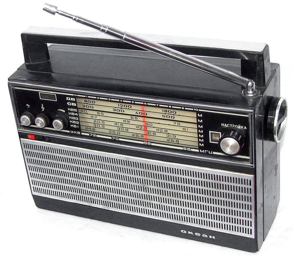 Переносные радиоприёмники *Океан* и *Океан-201* выпускались соответственно с 1969 и 1970 года Минским радиозаводом. **Океан** - первый отечественный переносной радиоприёмник 2 класса с УКВ диапазоном. Он работает в диапазонах ДВ, СВ, 5-ти поддиапазонах КВ от 25 до 75 метров и в вещательном УКВ диапазоне. Реальная чувствительность в диапазонах ДВ 0,5 мВ/м, СВ 0,3 мВ/м, КВ 100 мкВ и на УКВ 25 мкВ. Избирательность по соседнему каналу не менее 46 дБ в АМ диапазонах. ПЧ = 465 Кгц в АМ и 8,5 Мгц в ЧМ тракте. Номинальная выходная мощность усилителя 500 мВт. Диапазон звуковых частот 200...4000 Гц в АМ тракте и 200...10000 Гц в ЧМ. Питание 9 вольт от 6 батарей 373. Ток покоя 25 мА. Максимальный ток 150 мА. Габариты приёмника 320х116х245 мм. Масса 4,3 кг. Розничная цена 132 рубля. Модель выпускали и в экспортном варианте в основном для стран соцлагеря, хотя были и варианты для капиталистических стран. КВ и УКВ диапазоны приёмника были настроены под стандарты этих стран. Радиоприёмник **Океан**, в отличии от радиоприёмника **Океан-201** не имеет индикатора настройки.
