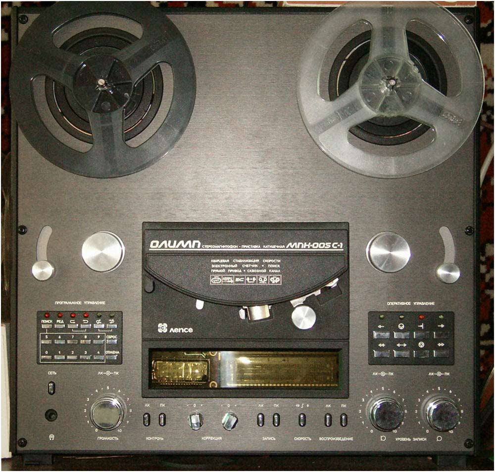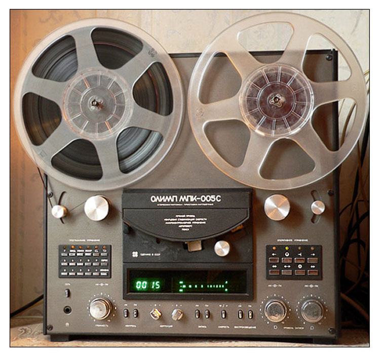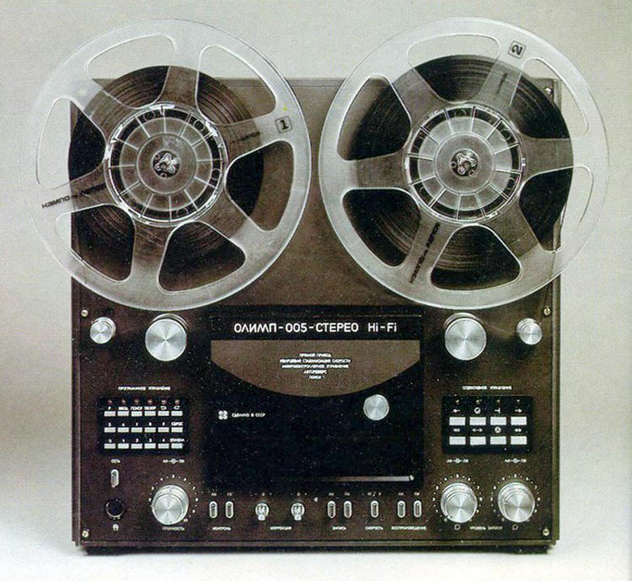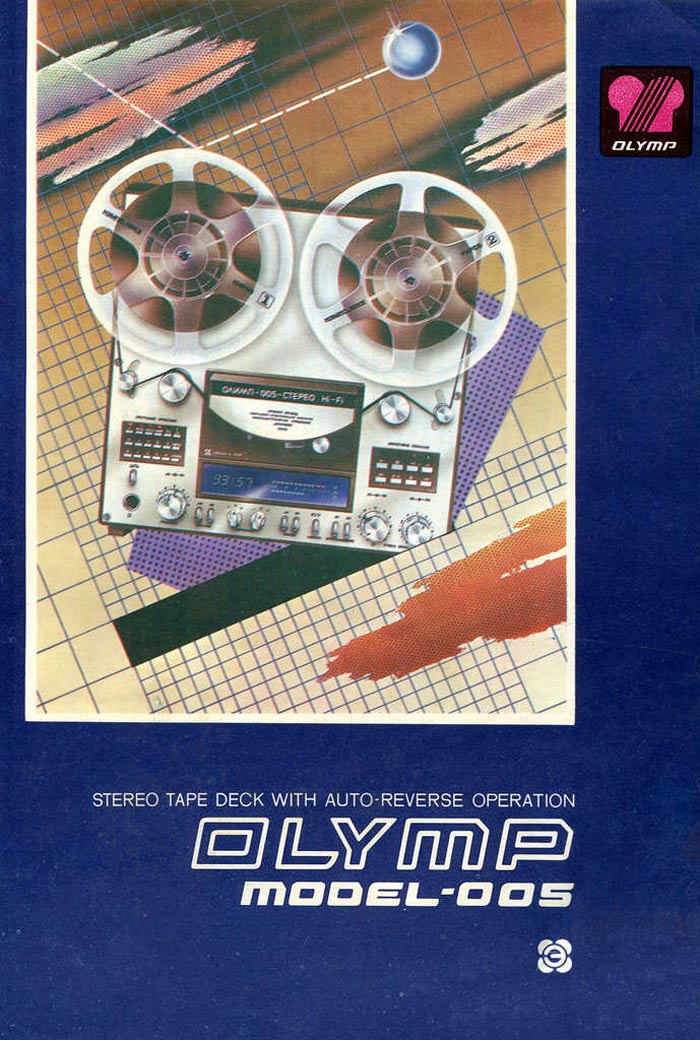 Стереофонический катушечный магнитофон-приставка *Олимп-005-стерео* с 1986 года выпускало Кировское электромашиностроительное ПО имени Лепсе. Стационарный катушечный МП высшего класса со сквозным трактом записи и воспроизведения предназначен для работы в составе радиокомплекса. Имеет микроконтроллерное программное управление, кварцевую систему стабилизации скорости движения магнитной ленты, автокоррекцию АЧХ канала записи, электронную коммутацию по всем входам, регулировку тока подмагничивания. В модели имеется полный автореверс, возможность поиска нужного фрагмента фонограммы по паузам (в режиме обзор и память), включение магнитофона в заранее установленное время (режим таймер), люминесцентную индикацию уровня записи, электронный счетчик ленты. Скорость протяжки ленты 19,05 и 9,53 см/с; рабочий диапазон частот на большей скорости 20...25000 Гц, меньшей 20...18000 Гц; коэффициент детонации соответственно 0,08% и 0,15%; коэффициент гармоник на скорости 19,05 см/с 1,5%; соотношение сигнал/шум на скорости 19,05 см/с -60, 9,53 см/с -56 дБ, потребляемая от сети мощность 100 Вт; габариты аппарата 460х450х220 мм; его масса 20 кг. Первая цена 1230 рублей. С 1987 года МП именовался как *Олимп МПК-005С*. С осени 1990 года завод выпускал магнитофон-пристаку *Олимп МПК-005С-1*, в котором были устранены недостатки предыдущих моделей. Для МП выпускалась система ДУ *Олимп ДУ-005*, первоначальное наименование *Олимп-5*.