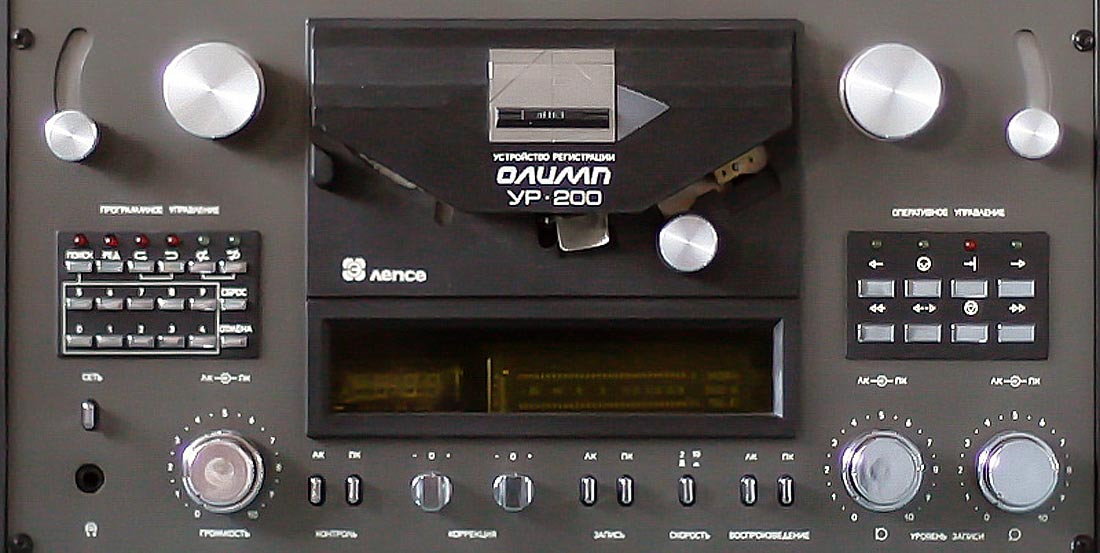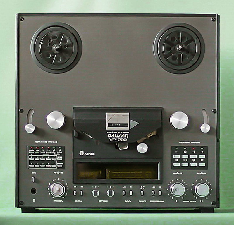 Устройство регистрации *Олимп УР-200* (магнитофон) с начала 1988 года выпускало Кировское ПО имени Лепсе. Магнитофон *Олимп УР-200* создан на базе МП *Олимп-005 стерео* и по построению схемы и оформлению схож с ним. УР предназначено для записи телефонных переговоров специальными службами, а также для других целей, в том числе использования как обычного высококачественного магнитофона. Он имеет микроконтроллерное программное управление, кварцевую систему стабилизации скорости, автокоррекцию АЧХ канала записи, электронную коммутацию по всем входам, регулировку тока подмагничивания. В аппарате имеется полный автореверс, возможность поиска нужного фрагмента по паузам (в режиме обзор и память), включение магнитофона в установленное время (режим таймер), люминесцентную индикацию уровня записи, электронный счетчик ленты. Скорость протяжки ленты 19,05 и 2,36 см/с; диапазон частот на большей скорости 20...25000 Гц, меньшей 80...8000 Гц; детонация 0,08 и 0,1%; потребляемая мощность 100 Вт; габариты устройства 460х450х220 мм; вес 20 кг.