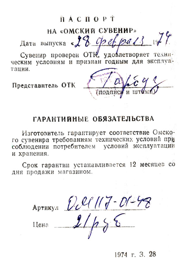 Сувенирный радиоприёмник *Омский сувенир* предположительно с 1969 года выпускал Омский приборостроительный завод имени Козицкого. *Омский сувенир* олицетворяет морской вокзал города Омска. Радиоприёмник *Омского сувенира* первоначально построен на базе сувенира *Останкинский телецентр* 1967 года выпуска и по схеме и характеристикам с ним совпадает. В процессе производства электрическая схема, конструкция и параметры *Омского сувенира* менялись. Сначала это был 6-транзисторный однодиапазонный (ДВ) вариант, с белым катером на фасаде, затем наверное с 1972 года 9-ти транзисторный двухдиапазонный (ДВ, СВ), уже без катера, а вместо него - ручка переключателя диапазонов. Питается радиоприёмник *Омского сувенира* от одной батареи типа КБС-0,5.