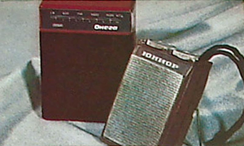 Портативный транзисторный радиоприёмник *Онега* опытная модель 1981 года. Радиоприёмник работает в диапазоне СВ. Другой информации нет.