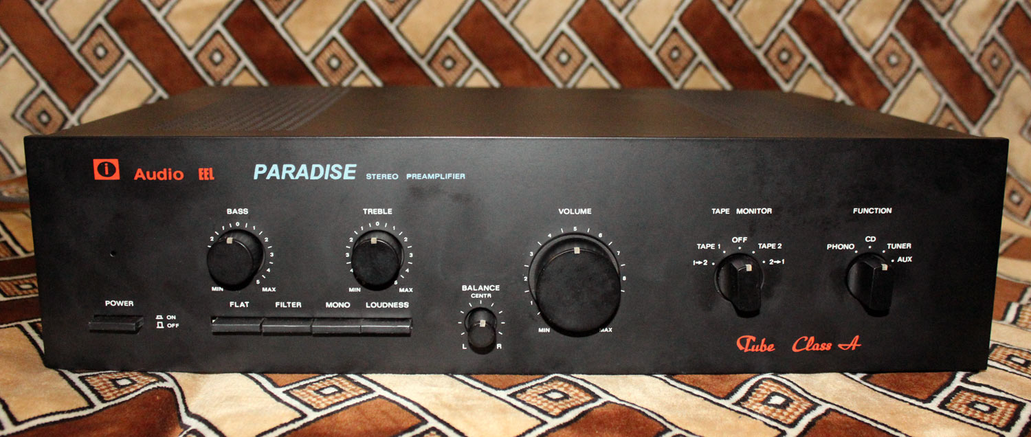 Усилитель предварительный *Paradise* (Audio Eel Paradise) опытно выпускал с 1993 года Таганрогский завод *Прибой*. Вот история выпуска аппарата, которую мне (А.Должанскому) поведал бывший сотрудник завода. УП выпускала лаборатория В.А.Стародубцева (автора разработки) уже после его ухода с завода. Называлась она *ВВВ* (за точность не уверен). Комплектующие УП делал завод *Прибой*. Где-то в 1998 году выпуск был прекращён, но на заводе остался задел комплектующих от УП *Paradise*. Завод переживал тяжелые времена, и кто-то решил из этих комплектующих выпустить изделие под названием *Прибой УП-101*. В этом усилителе в скором времени исключили селектор перезаписи. Так что усилитель *Прибой УП-101* является клоном *Paradise*, а не наоборот.