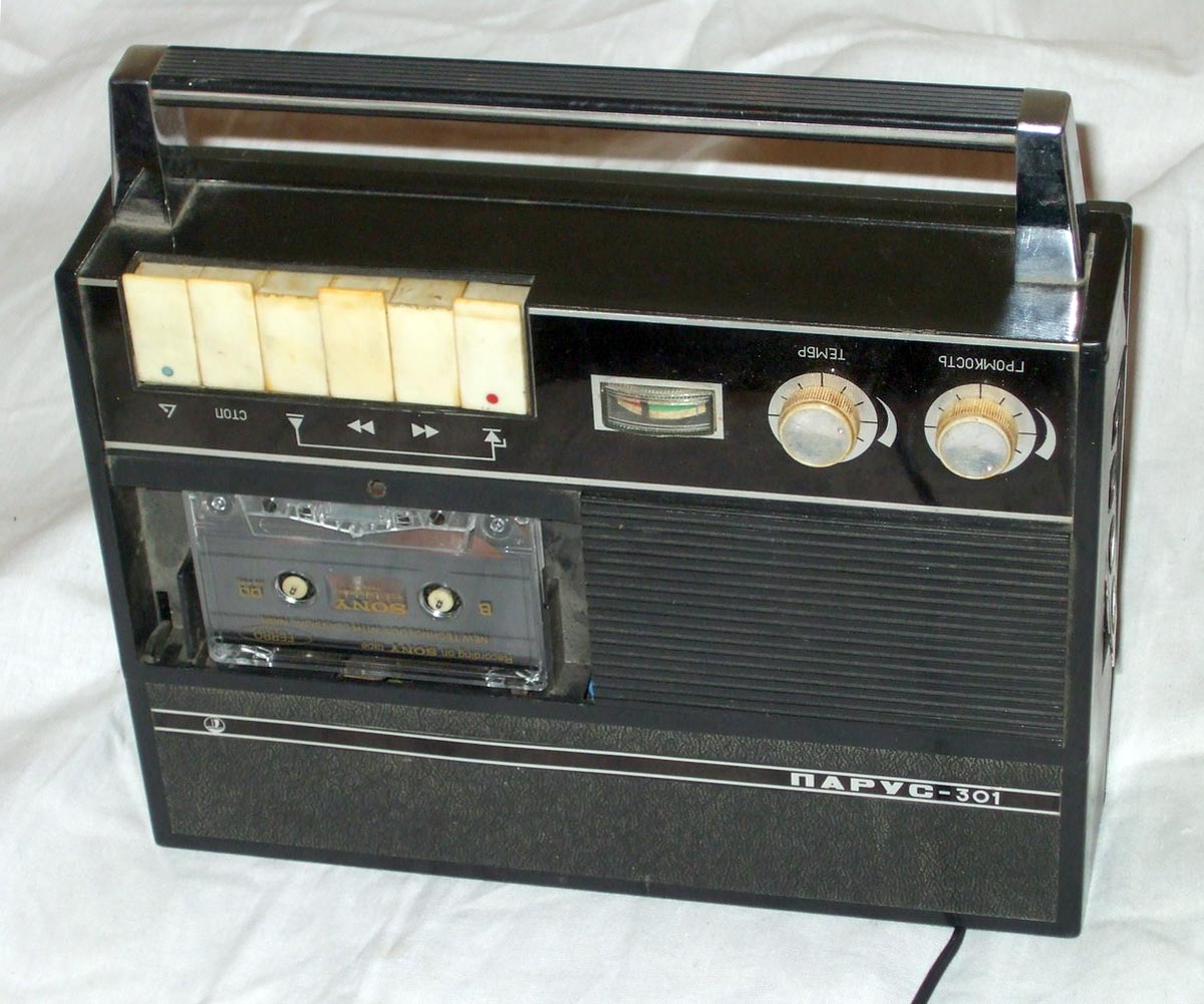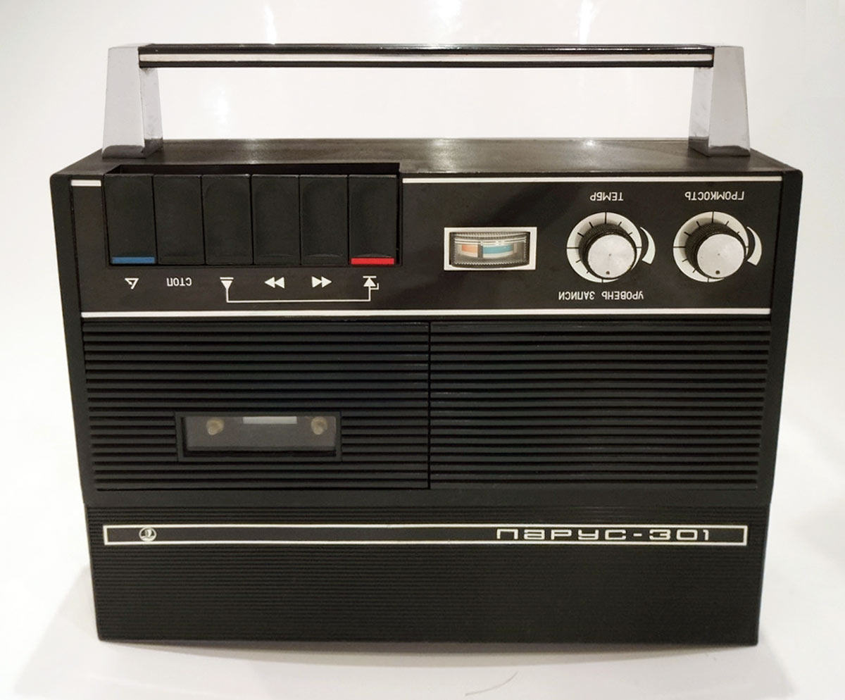 Портативный кассетный магнитофон *Парус-301* с 1972 года выпускал Саратовский завод *Знамя Труда*. По своей конструкции, схеме, механической и электрической частям, а также техническим характеристикам магнитофон аналогичен магнитофону **Электроника-301**. Выпускался с целью увеличения ассортимента кассетных магнитофонов и отличается только внешним оформлением. Чёрный полистирольный корпус модели оформлен декоративными шильдами из алюминия, с надписями и символами выполненными фотоспособом, крышка отсека кассеты сделана из чёрного полистирола с окошечком.