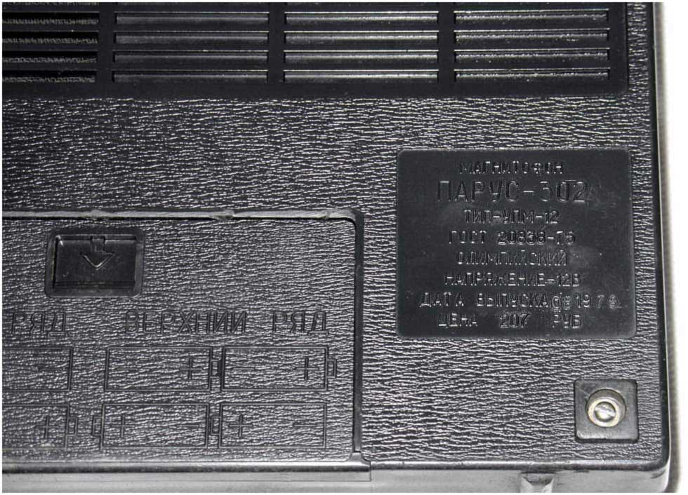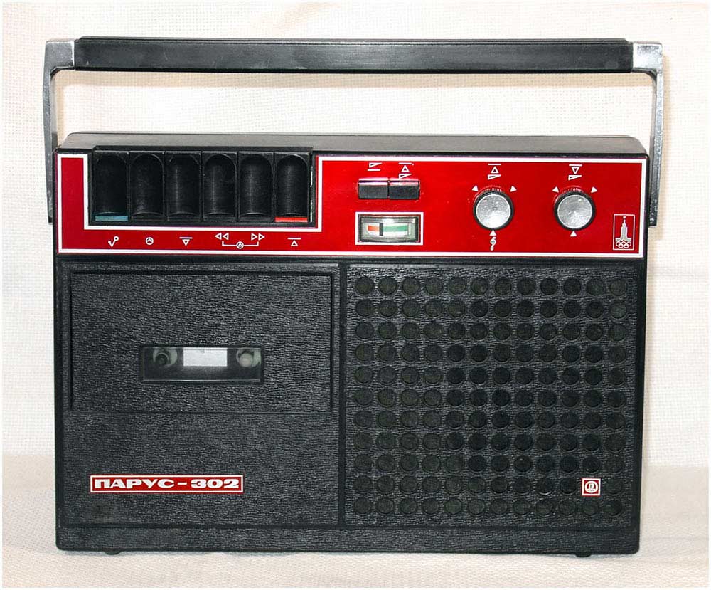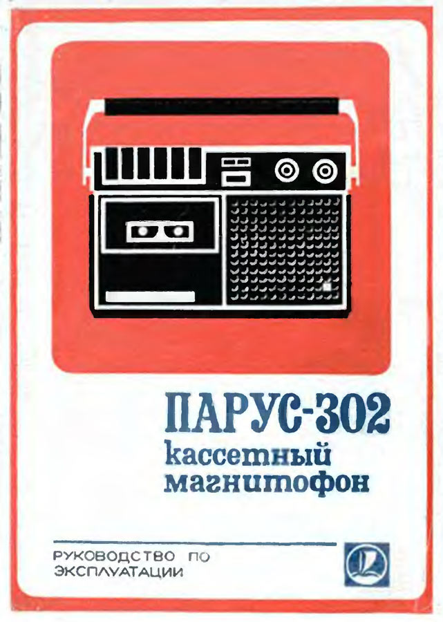 Кассетный магнитофон *Парус-302* с I-кв 1979 года выпускал Саратовский завод *Знамя Труда*. Магнитофон предназначен для записи звуковых программ на магнитную ленту размещённую в кассете МК-60 и последующего их воспроизведения. Питается магнитофон от 8-ми элементов типа А-343 или внешнего источника постоянного тока напряжением 12 вольт с номинальным током нагрузки 0,4 ампера или от сети с помощью блока питания, входящего в комплект. Потребляемый ток от источника питания при работе на внутренний громкоговоритель при выходной мощности 0,25 Вт не более 220 мА. Расход элементов 343 зависит от громкости воспроизведения и в общем их достаточно на 8...10 часов непрерывной работы магнитофона. Скорость движения ленты 4,76 см/с. Рабочий диапазон частот на ЛВ - 63...10000 Гц. Время записи при использовании кассеты МК-60 - 2х30 мин. Диапазон регулировки тембра по ВЧ - 10 дБ. Коэффициент детонации ±0,35%. Громкоговоритель типа 1ГД-40. Максимальная выходная мощность при работе от сетевого БП на внутренний громкоговоритель 1,5 Вт, на внешнюю АС сопротивлением 4 Ом - 2 Вт. Коэффициент искажений не более 5%. Габариты магнитофона - 312х266х82 мм. Масса - 3,5 кг. В магнитофоне имеется ручная и автоматическая регулировки уровня записи.