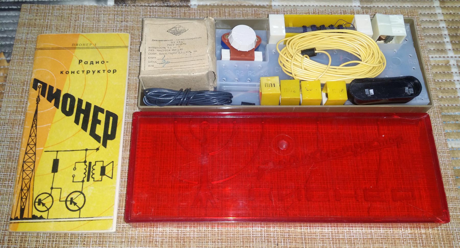 Радиоконструкторы *Пионер* и *Пионер-1* выпускали с 1968 года на Хмельницком радиотехническом заводе. Радиоконструктор *Пионер* (основная заставка) предназначен для сборки в футляре радиоприёмника прямого усиления диапазона ДВ и СВ. Радиоконструктор *Пионер-1* (фотографии внизу) предназначен для сборки без футляров более 6-ти простых радиоприёмников и двух генераторов НЧ для получения сигналов азбуки Морзе.