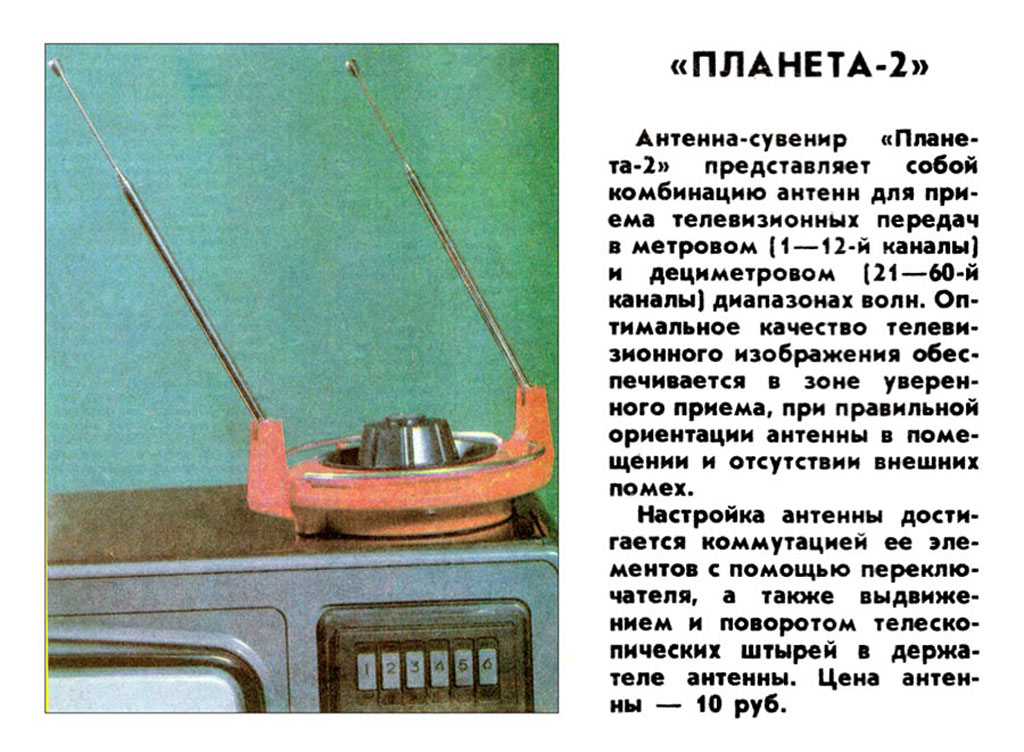 Телевизионная антенна *Панета-2* выпускалась предположительно с 1988 года. Предназначена для приёма ТВ сигналов в МВ и ДМВ диапазонах.