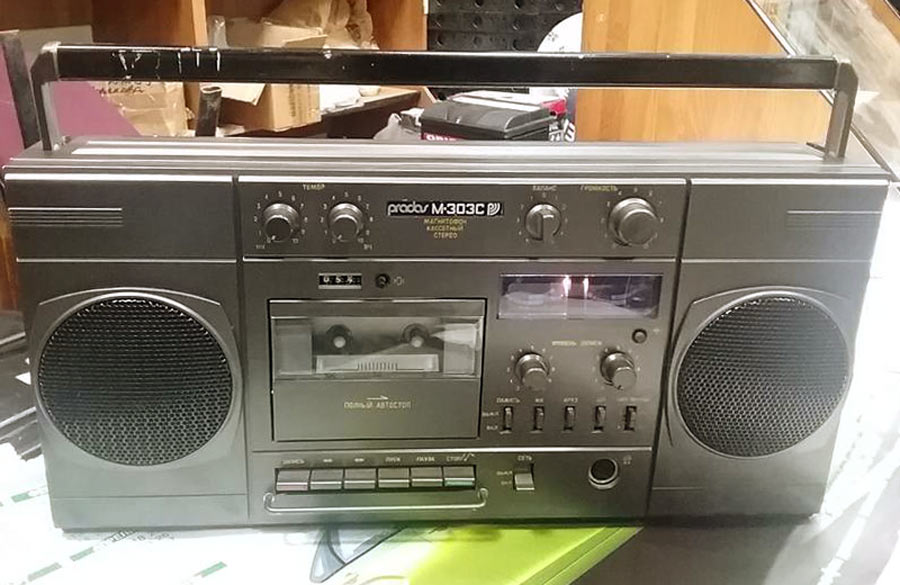 Кассетный стереофонический магнитофон *Pradas М-303-стерео* с 1993 года выпускало Пензенское ПО *Электроприбор*. Магнитофон полностью аналогичен модели *ИЖ М-303* и выпускался для расширения ассортимента продукции. Предназначен для записи звуковых программ на ленту А4205-ЗБ в кассете МК-60 и последующего воспроизведения. Имеется ручная и автоматическая регулировка уровня записи, автостоп при обрыве и окончании магнитной ленты, счётчик расхода ленты с устройством память, стрелочные индикаторы уровня записи, система шумопонижения. К аппарату можно подключить внешние АС и головные телефоны ТДС-9,ТДС-6. Питание универсальное: от 8 элементов 343 или от сети. Скорость ленты 4,76 см/с. Коэффициент детонации ±0,35 %. Номинальная выходная мощность 2х1 Вт. Рабочий диапазон частот звука на ЛВ - 63...10000 Гц. Относительный уровень шумов и помех с СШП -56 дБ. Размеры модели 442х217х116 мм. Вес с батареями 5 кг. В 1994 году выпуск МГ прекращён.