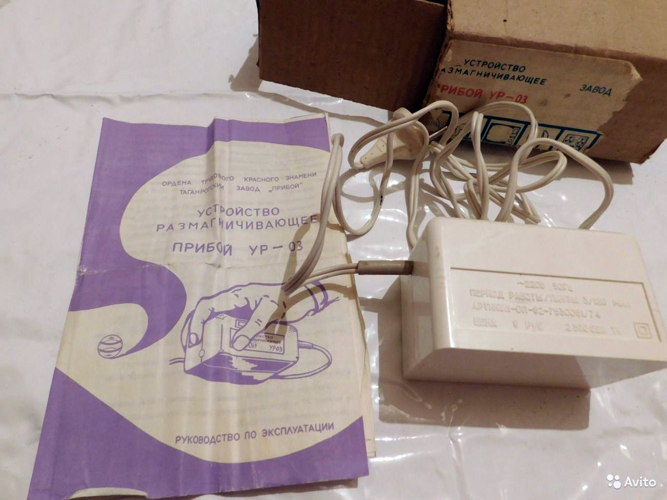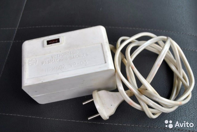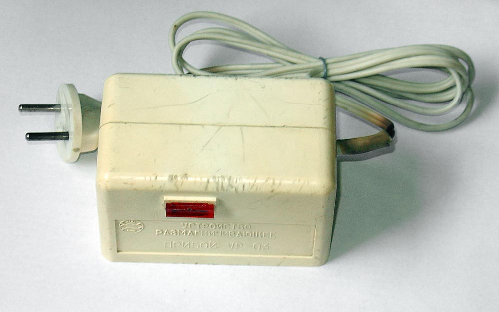 Устройство размагничивающее *Прибой УР-03* выпускалось с I-кв 1987 года Таганрогским заводом *Прибой*. Устройство размагничивающее *Прибой УР-03* предназначено для размагничивания экранов цветных телевизоров, лентопротяжных механизмов магнитофонов, магнитных лент в катушках и кассетах, магнитных головок, механических наручных часов, различных инструментов и любых устройств намагничивающихся в процессе их работы.