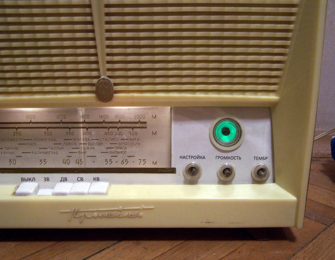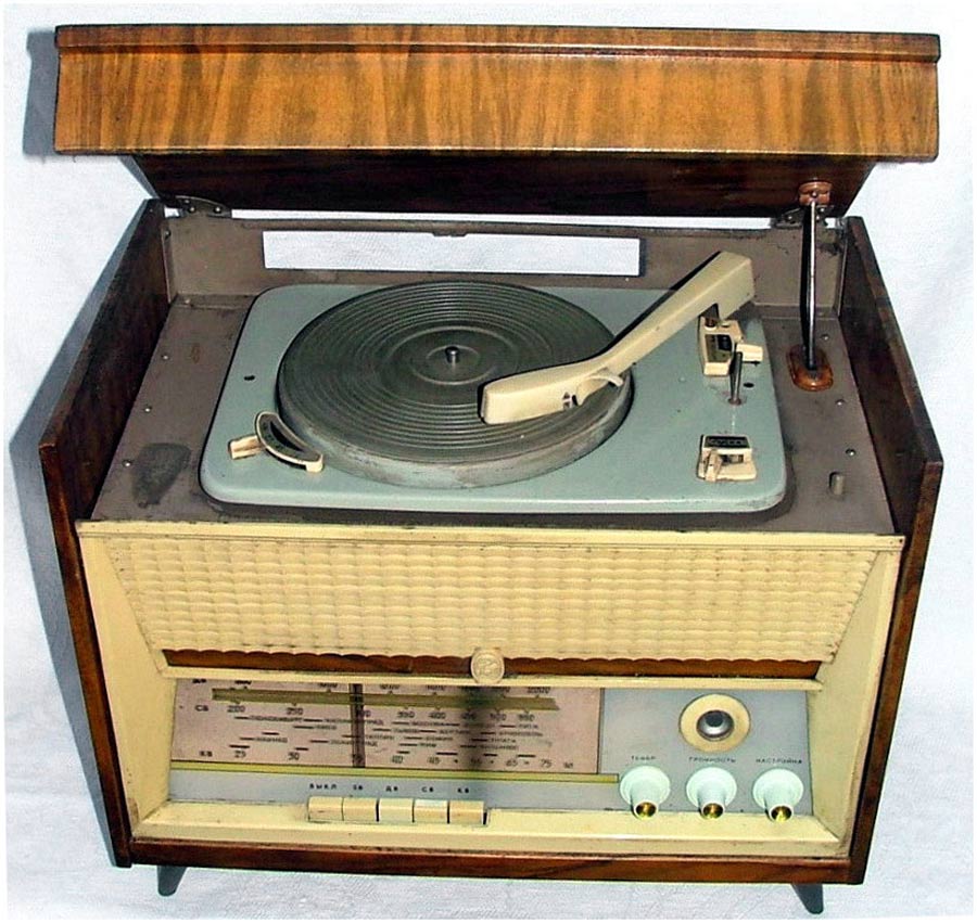 Радиолы сетевые ламповые *Проминь*, *Проминь-2* и *Проминь-М* с 1963, 1964 и с 1965 года выпускались Днепропетровским радиозаводом. Радиола третьего класса **Проминь** представляет собой четырёхламповый радиоприёмник объединённый с универсальным 3-х скоростным электропроигрывающим устройством ЭПУ-5. Диапазоны: ДВ 150...408 кГц, СВ 520...1600 кГц и обзорный КВ 3,95...12,1 мГц. Чувствительность в диапазонах ДВ, СВ 200 мкВ, КВ 300 мкВ. ПЧ 465 кГц. Селективность по соседнему каналу 30 дБ. Номинальная выходная мощность усилителя 0,5 Вт. Диапазон воспроизводимых частот при приёме 150...3500 Гц а при прослушивании грамзаписи 150...5000 Гц. Потребляемая мощность 45 Вт при приёме и 60 Вт при проигрывании пластинок. Акустическая система радиолы состоит из двух громкоговорителей типа 1ГД-9. Габариты радиолы 440х260х320 мм. Вес 11 кг. С 1964 года завод выпускал радиолу **Проминь-2**, сходную по конструкции и внешнему виду с описанной, но уже с диапазоном УКВ вместо КВ. Была переработана электрическая схема, из-за чего повысилась чувствительность АМ тракта, а полоса воспроизводимых частот возросла до 100...4000 Гц при приёме в АМ диапазонах и 100...7000 Гц при приёме в ЧМ и прослушивании грамзаписи. В 1965 году радиола модернизирована в модель **Проминь-М**. Из-за невысокой чувствительности в диапазоне УКВ, малочисленности станций и ограниченности их радиуса действия, модели опять вернули обзорный диапазон коротких волн. Схема модели снова была переработана, в АС применены новые громкоговорители 1ГД-28, многие параметры модели стали соответствовать ГОСТу на приёмники 2-го класса. Внешний вид, габариты и вес радиолы за мелкими исключениями фальшпанели практически не изменился. Цена на радиолу *Проминь-2* была 69 рублей.