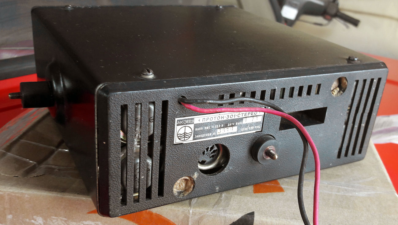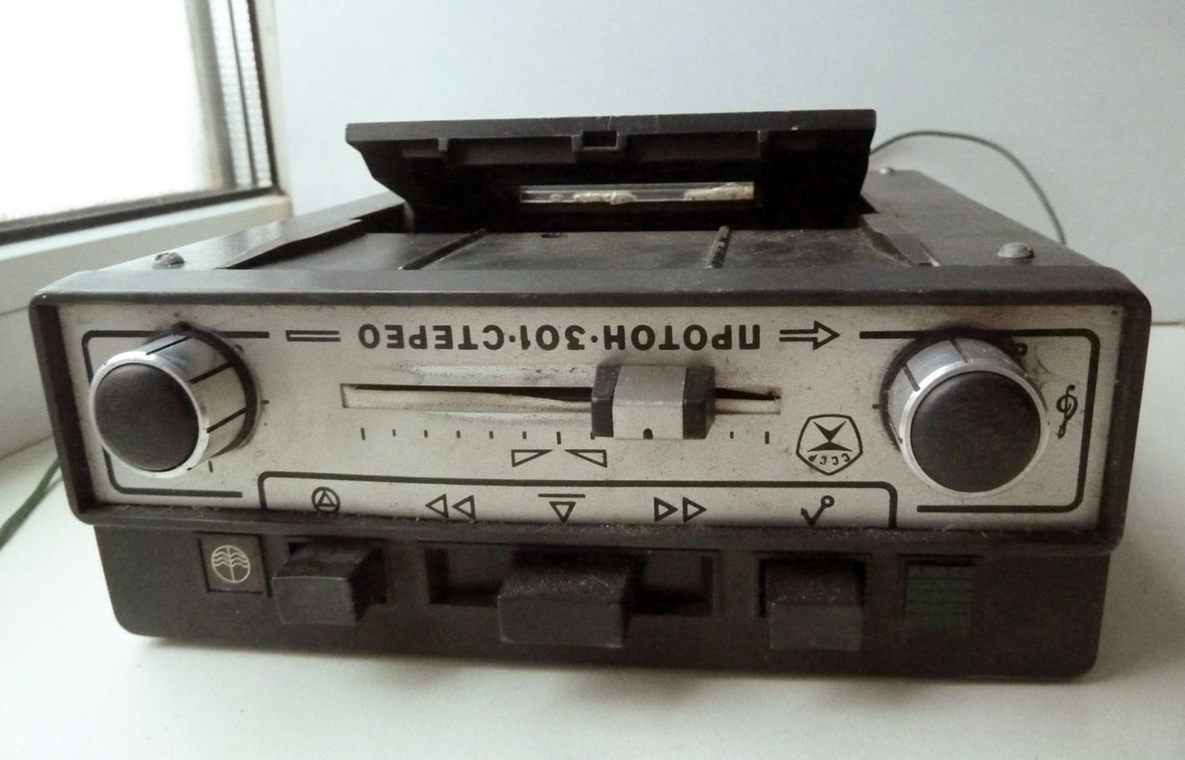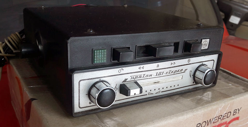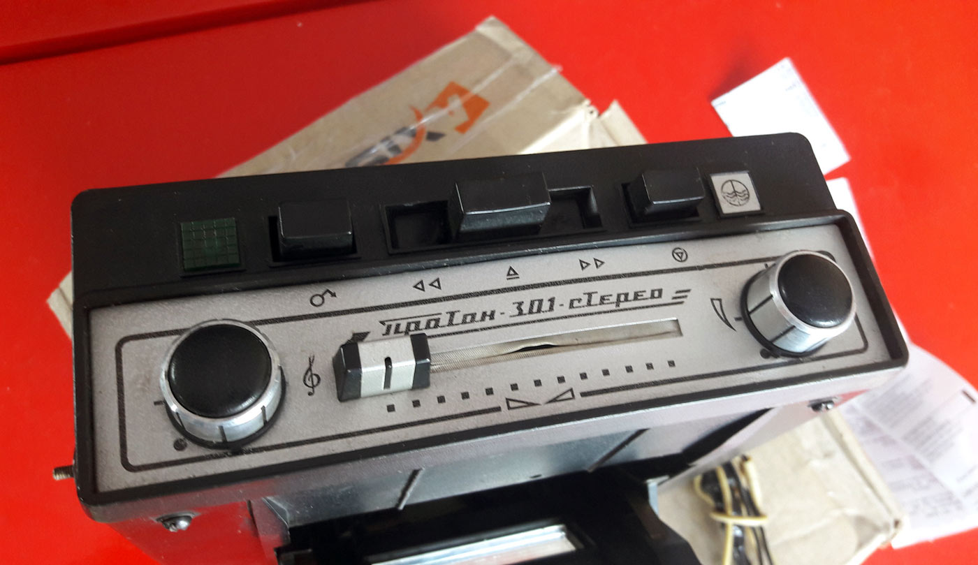 Автомобильное воспроизводящее устройство *Протон-301-стерео* с 1977 года выпускал Харьковский завод *Протон*. Предназначено для установки в автомобили Жигули, Москвич и Волга. Рассчитано на воспроизведение моно и стерео фонограмм с кассет МК. ЛПМ выполнен на базе ЛПМ магнитофона *Спутник-403*, обеспечивающего ускоренную перемотку ленты и автоматическое выключение ЛПМ по окончании кассеты. В АВУ имеется регулировка громкости, тембра ВЧ, стереобаланса, индикация включения. Работает АВУ на две АС в каждой из которых установлено по головке 4ГД-8Е. Скорость ленты 4,76 см/с. Время воспроизведения кассеты 2х30 мин. Коэффициент детонации ЛПМ ±0,4%. Номинальная выходная мощность 2х2 Вт. Диапазон рабочих частот 63...10000 Гц. Мощность, потребляемая от аккамулятора 23 Вт. Габариты АВУ - 225х72х212, АС - 100х148х160. Масса АВУ 3 кг, АС 1 кг. Цена АВУ 220 рублей.