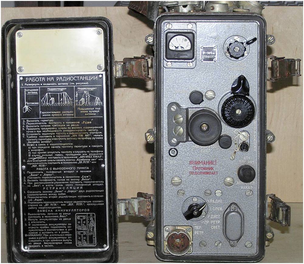 Носимые УКВ-ЧМ радиостанции *Р-105М*,*Р-108М*,*Р-109М* выпускали с 1967 года. Переносные ранцевые УКВ-ЧМ радиостанции **Р-105М** пришли на смену устаревшим радиостанциям **Р-105Д**. Модернизированные радиостанции выпускались так же в 3-х вариантах: **Р-105М**, **Р-108М** и **Р-109М** и отличались между собой различными диапазонами частот, совпадающими со старыми вариантами радиостанций **Р-105Д**, но имеющие больше рабочих каналов в каждом диапазоне. Диапазон частот радиостанции **Р-109М** - 21,5...28,5 МГц (13,95...10,52 м), радиостанции **Р-108М** - 28.0...36,5 МГц (10,7...8,22 м), а радиостанции **Р-105М** - 36...46,1 МГц (8,3...6,5 м). Радиостанция типа **Р-105М** приёмо-передающая, с возможностью дистанционного управления и ретрансляции сигналов. Все радиостанции комплектуются штыревыми антеннами, короткой и длинной, а также направленной лучевой антенной. Радиостанции позволяют проводить связь при расположении их на земле, за спиной идущего радиста, а так же на борту автомашины при движении, из укрытия под землей, с использованием коаксиального фидера длиной 10 м. Радиостанции обеспечивают дальность связи до 30 километров при высокой экономичности и помехозащищённости. Микрофон типа ДЭМШ-1 и головные телефоны ТА-56м объединены в гарнитуру. Можно использовать и гарнитуру в виде телефонной трубки. Радиостанции питаются от 2х аккумуляторов типа 2КНП-20 или 4х элементов КН-14 общим напряжением 4,8 в. Модуляция частотная, связь симплексная. Чувствительность 1,5 мкВ. Оптическая шкала с делениями по 25 кГц. Выходная мощность передатчика 1 Вт. Девиация 5 кГц.