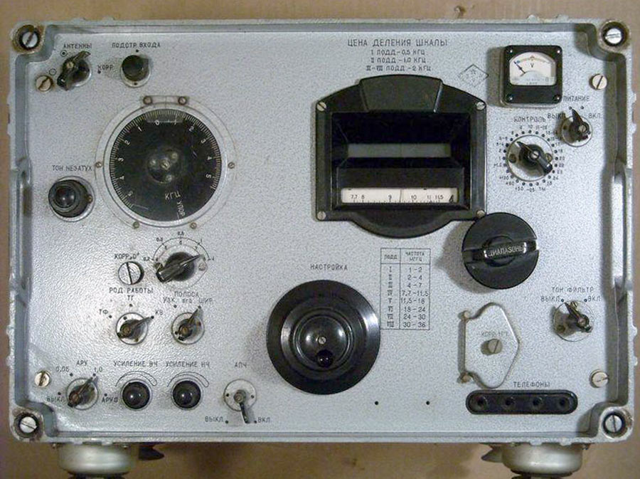 Магистральный профессиональный связной радиоприемник *Р-309* (Ячмень) с 1967 года выпускал Харьковский радиозавод им. 25-го съезда КПСС. Оптическая шкала. Диапазон частот: 1...36 МГц. Чувствительность при полосе 4 кГц в телефонном режиме 3 мкВ, телеграфном 0,6 мкВ. Ослабление чувствительности по зеркальному каналу не менее 4 тысяч раз, на 6-7 поддиапазонах не менее 2 т. раз. По сигналам ПЧ 10 т. раз. Количество точек поражённого приёма 20. Имеется выход НЧ 0,5 В (300...3000 Гц), АРУ для сдвоенного приёма, электродвигатель для АПЧ. Габариты приёмника: 480х290х440 мм. Вес 33 кг, БП 14 кг. Питание от сети переменного тока 127 или 220 В, через внешний БП или от аккумулятора напряжением 12 В. Более подробное описание приёмника имеется в интернете.
