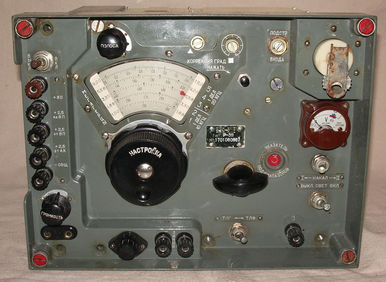 Армейский радиоприёмник *Р-311* (Омега) выпускался с 1955 года. Предназначен для приёма телеграфных и телефонных сигналов в диапазоне частот от 1 до 20 МГц Выполнен по супергетеродинной схеме на восьми лампах типа 2Ж27Л. Основные характеристики: Супергетеродин с одним преобразованиям частоты. Число поддиапазонов - 5. Режимы работы AM, CW. Отображение частоты - механическая шкала. Чувствительность (AM/CW) 7,5/3 мкВ. Ослабление зеркального канала не менее - 40 раз. Полоса пропускания (по уровню 0,5/0,01) 300...4000 Гц/3,5...16 КГц. Регулировка полосы плавная. Источник питания - аккумулятор 2НКП24, вибропреобразователь ВП-3М2, батарея БАС-Г-80. Потребляемый ток по анодным цепям 14 мА, по накальным цепям 0,52 А (без освещения); 1,1 А (с освещением шкалы). Габариты и масса 520х475х335 мм; 21 кг. Приёмник достаточно подробно описан в интернете.